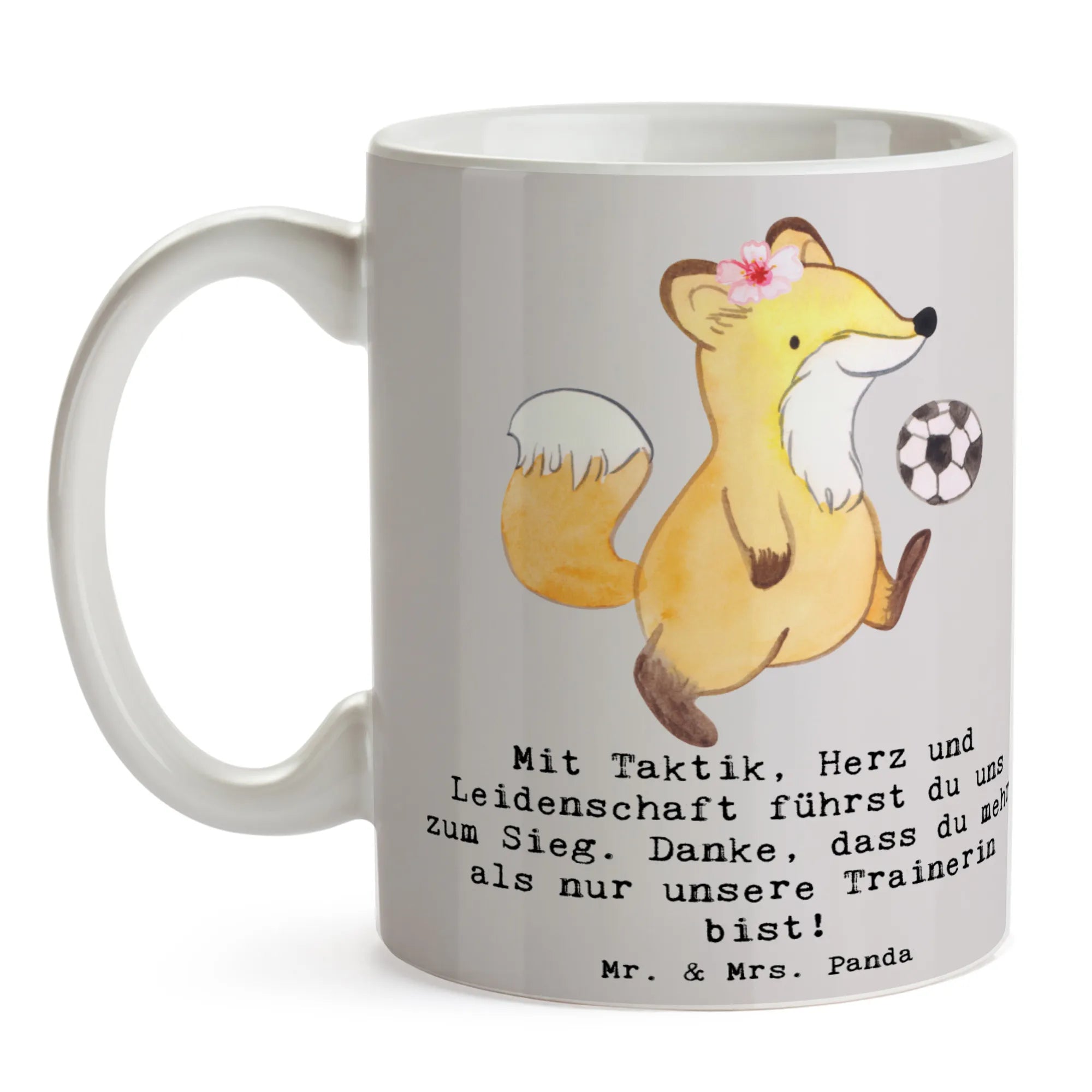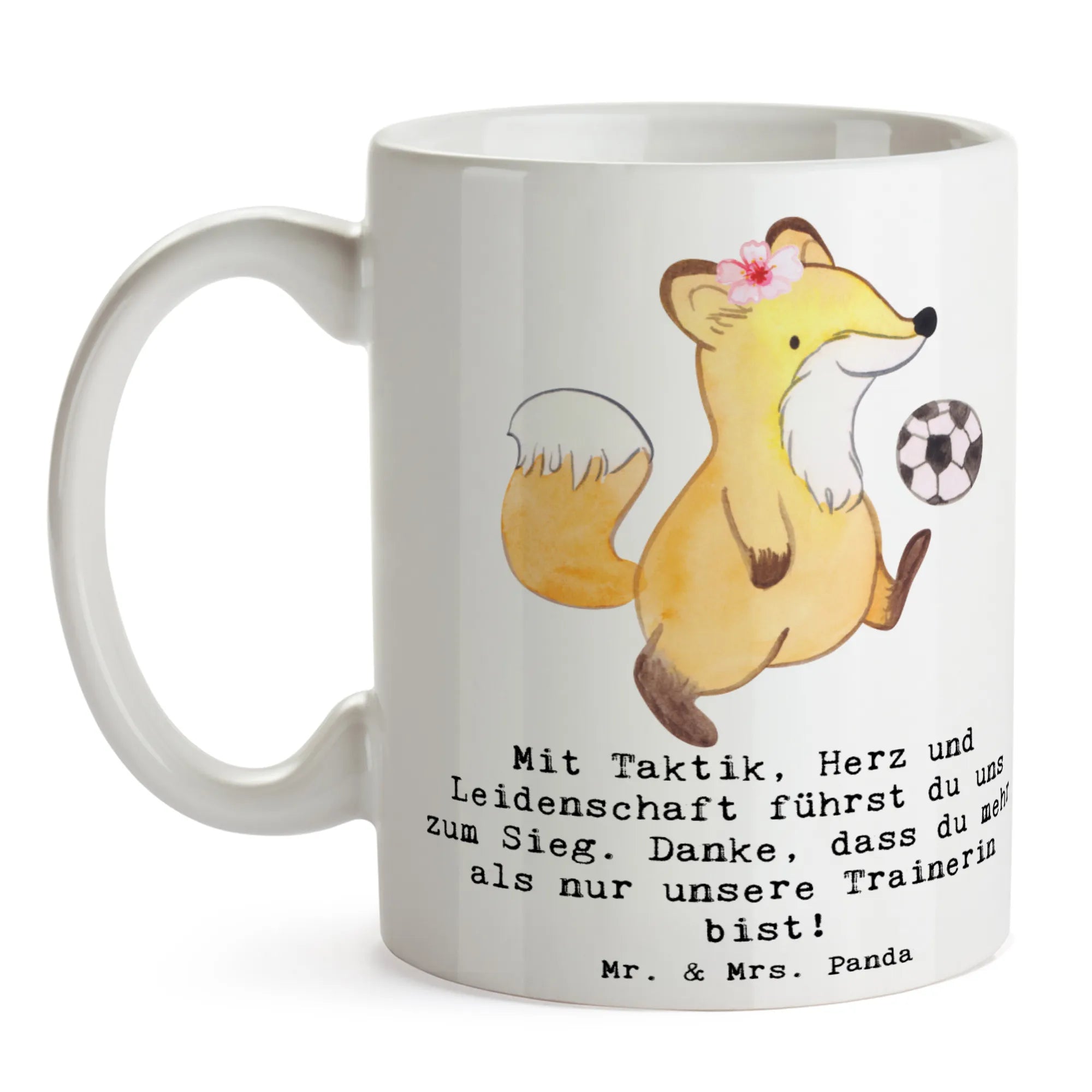 Ein Geschenk, das von Herzen kommt: Die Mr. & Mrs. Panda Kaffeetasse „Fußball Trainerin“ ist das perfekte Dankeschön für alle Trainerinnen, die mit Taktik, Herz und Leidenschaft ihr Team zum Sieg führen. Der liebevolle Spruch „Mit Taktik, Herz und Leidenschaft führst du uns zum Sieg. Danke, dass du mehr als nur unsere Trainerin bist!“ bringt deine Anerkennung auf den Punkt.