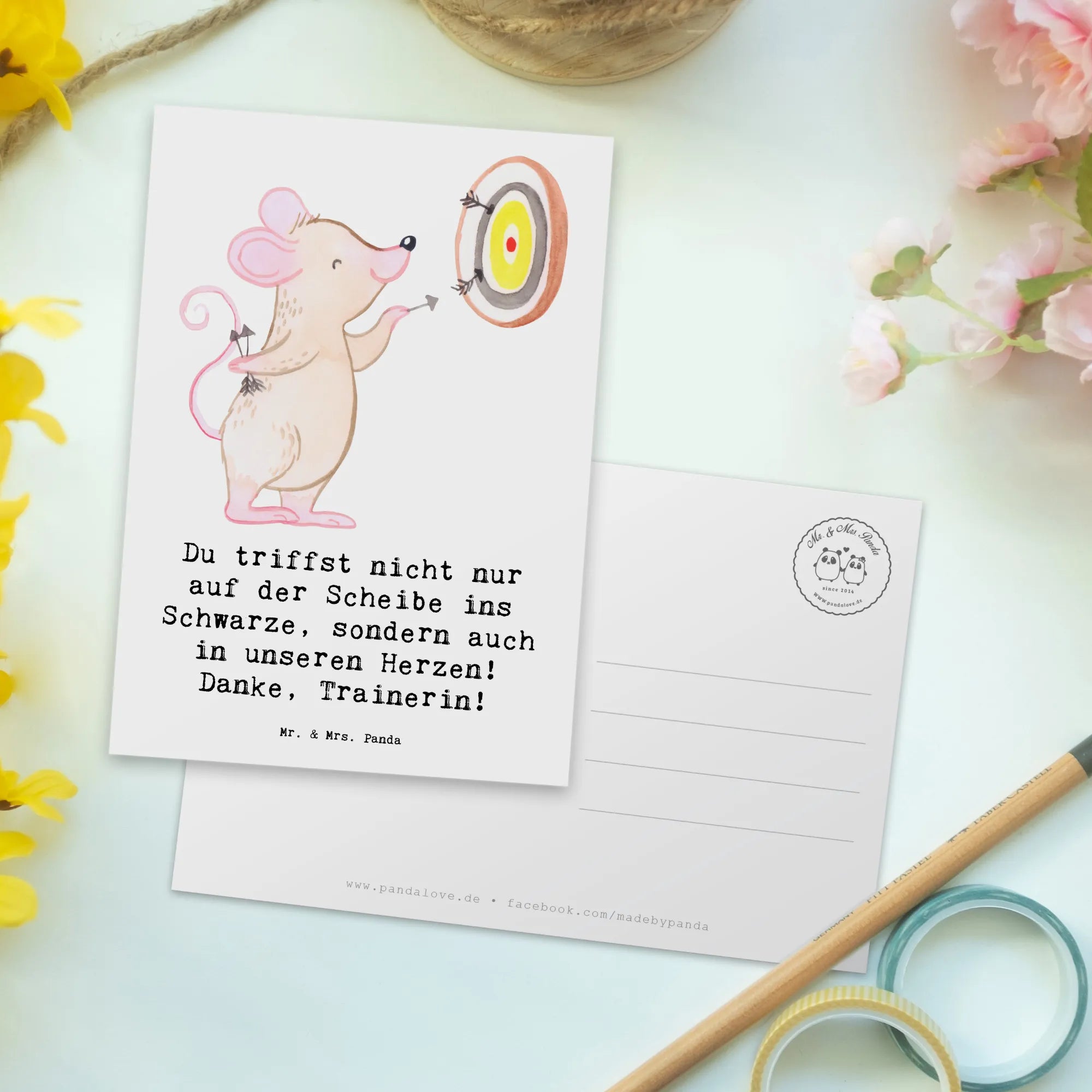 Postcard Du triffst nicht nur auf der Scheibe ins Schwarze, sondern auch in unseren Herzen! Danke, Trainerin! - White