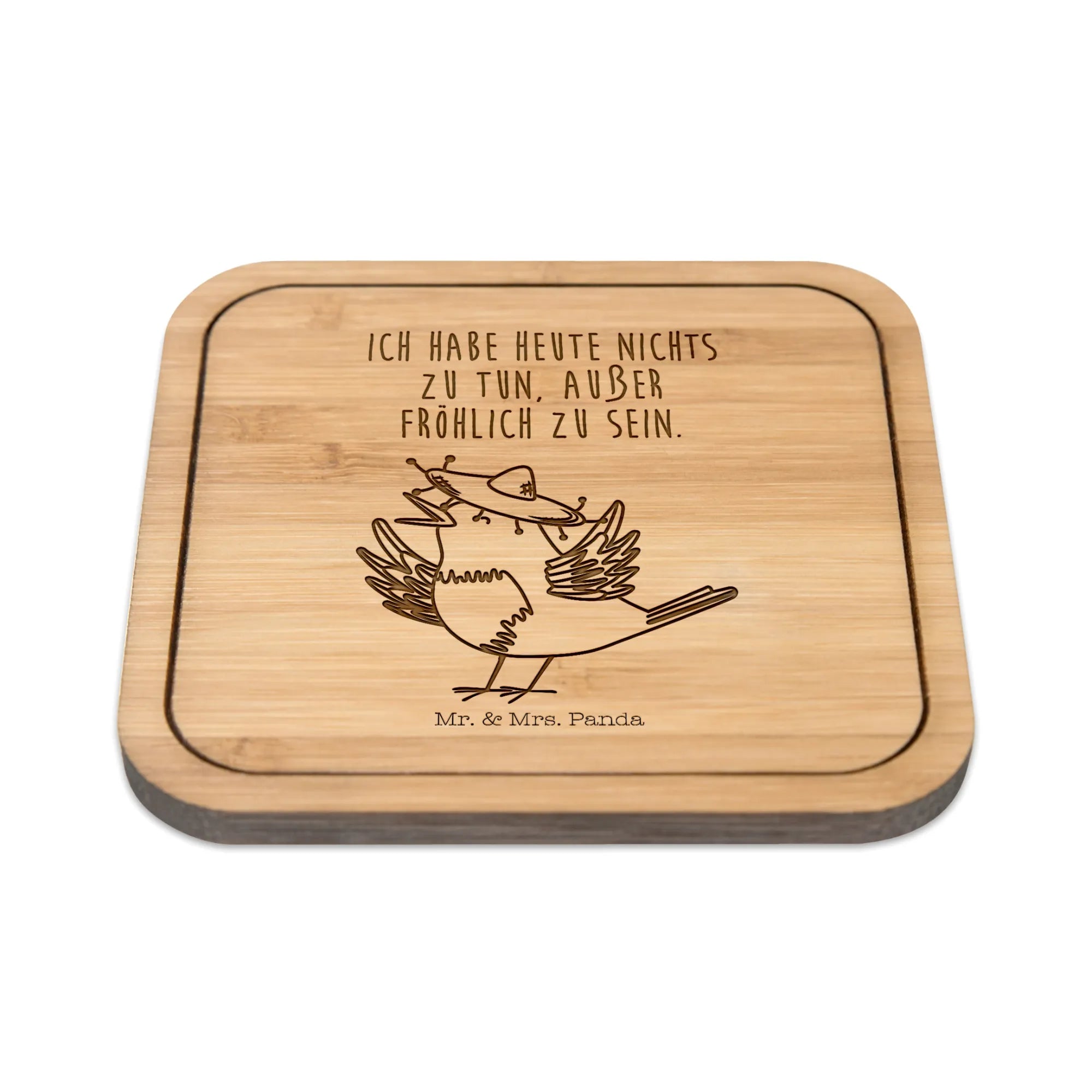 Square coaster Crow sombrero glass, square, glass coasters, coasters, breakfast, glasses, giveaways, gift, gifts, party, set, wood, presents, small animals, cute, funny, cute animal motives, hand drawn, small world, funny sayings, good mood, happy, gift ideas, special gifts, animal lover, card, Magpie, Bird, Be happy, Birds, Motivation, Saying positive, Raven, Happiness Saying