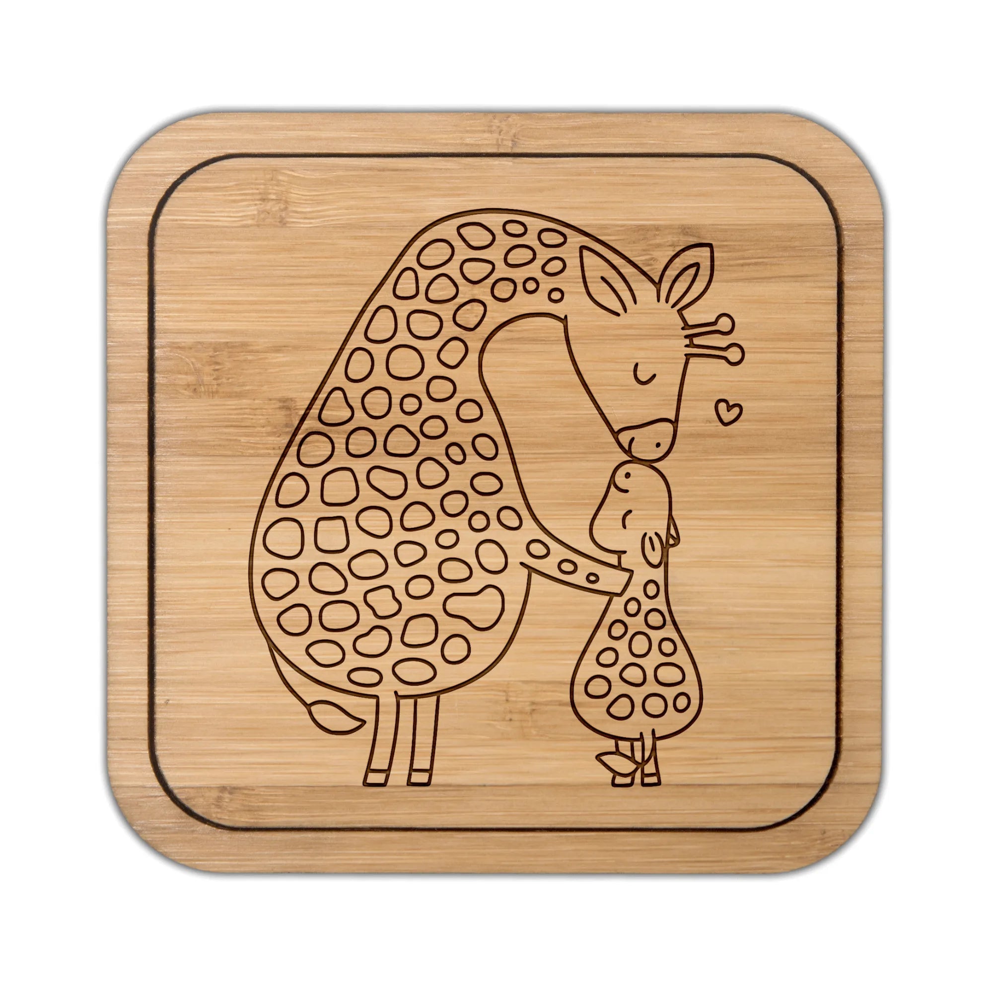 Square coaster giraffe child glass coasters, party, square, presents, glass, glasses, wood, giveaways, gift, coasters, set, breakfast, gifts, Africa, favourite person, son, child, giraffe, daughter, mother, mum