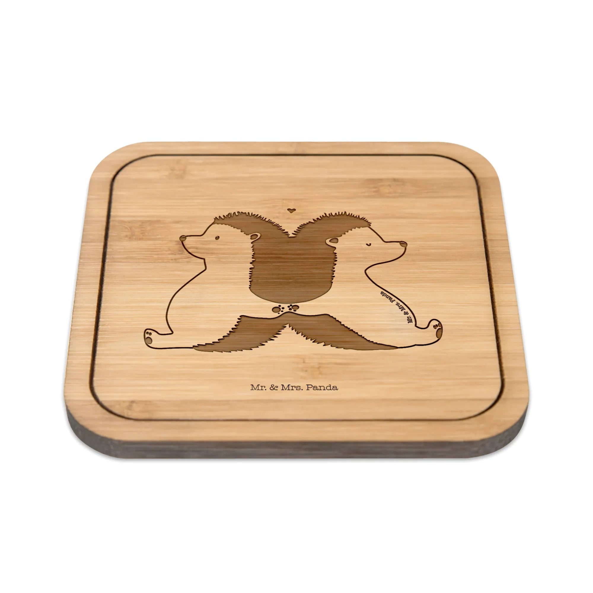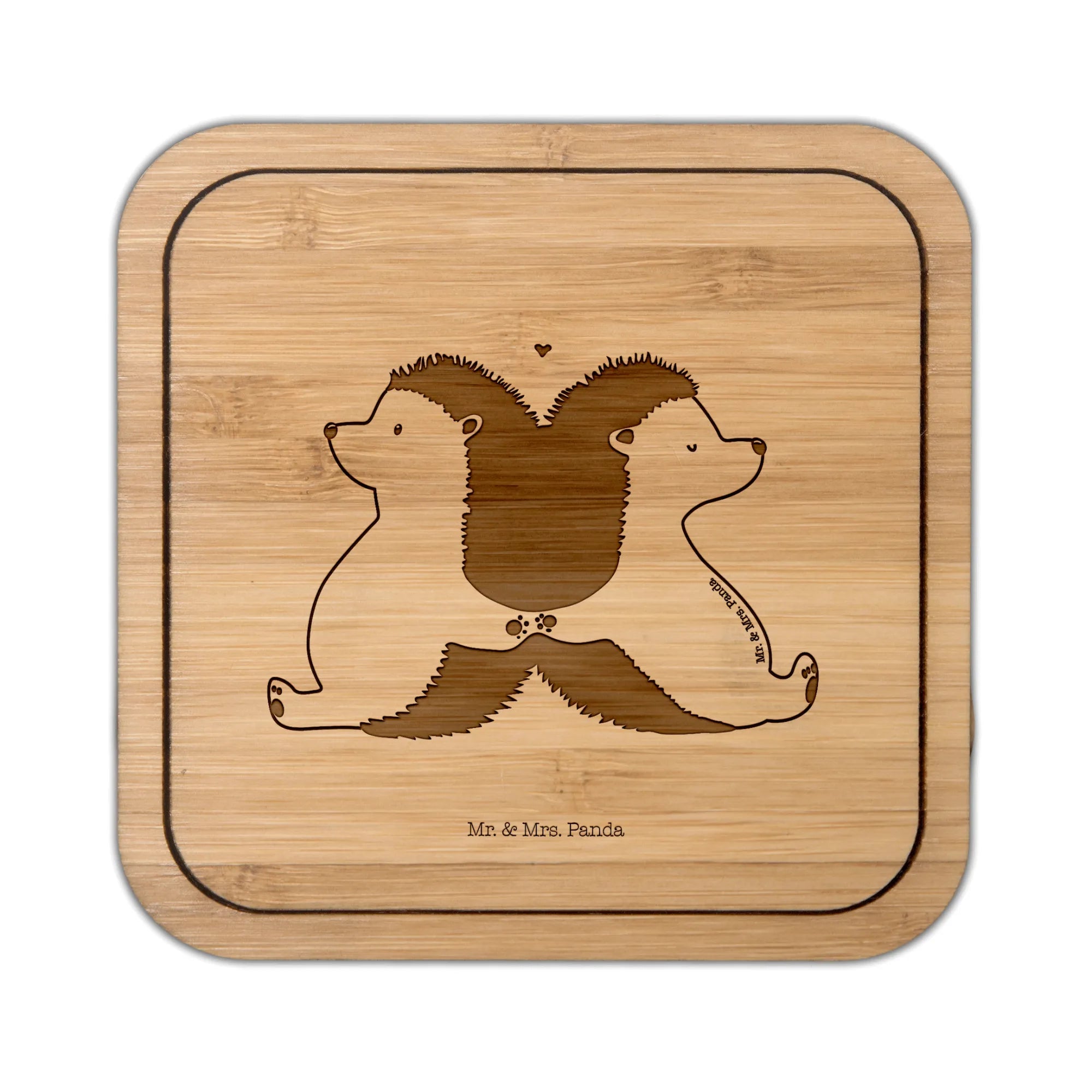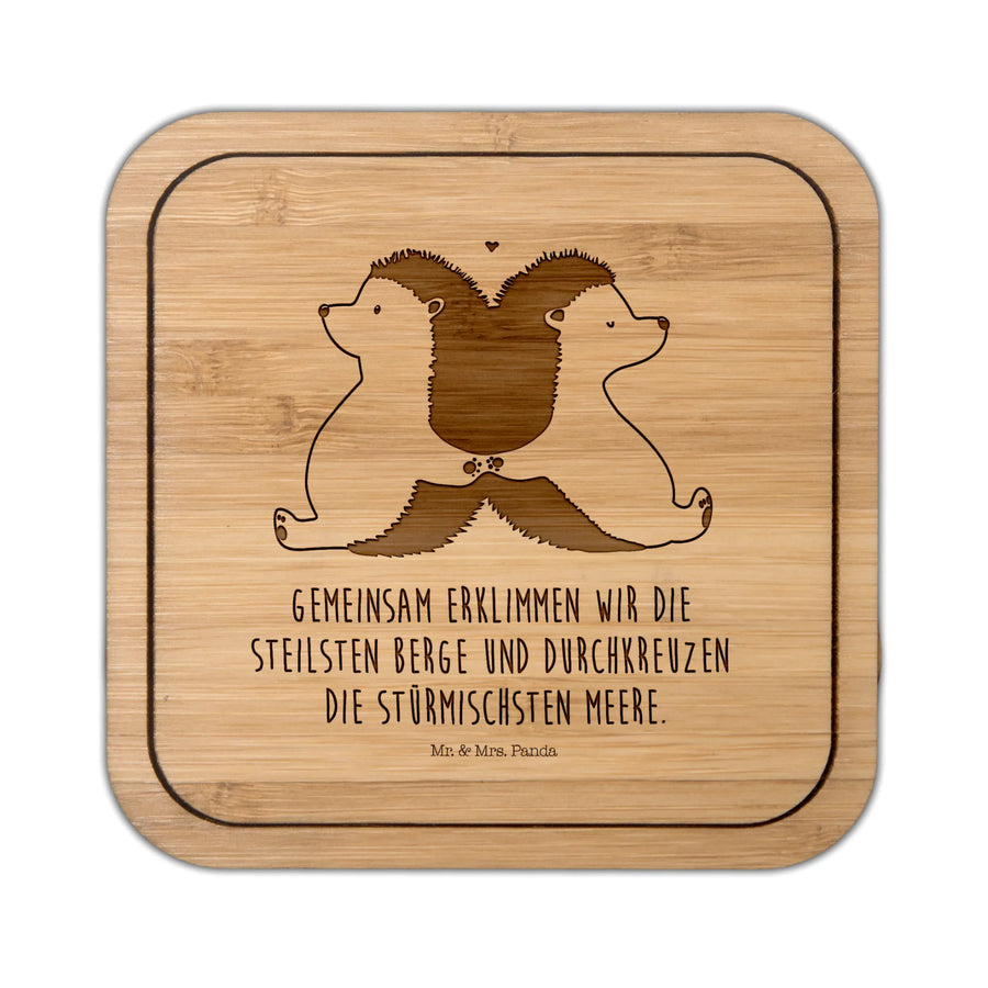 Square coaster Hedgehogs holding hands - with a saying