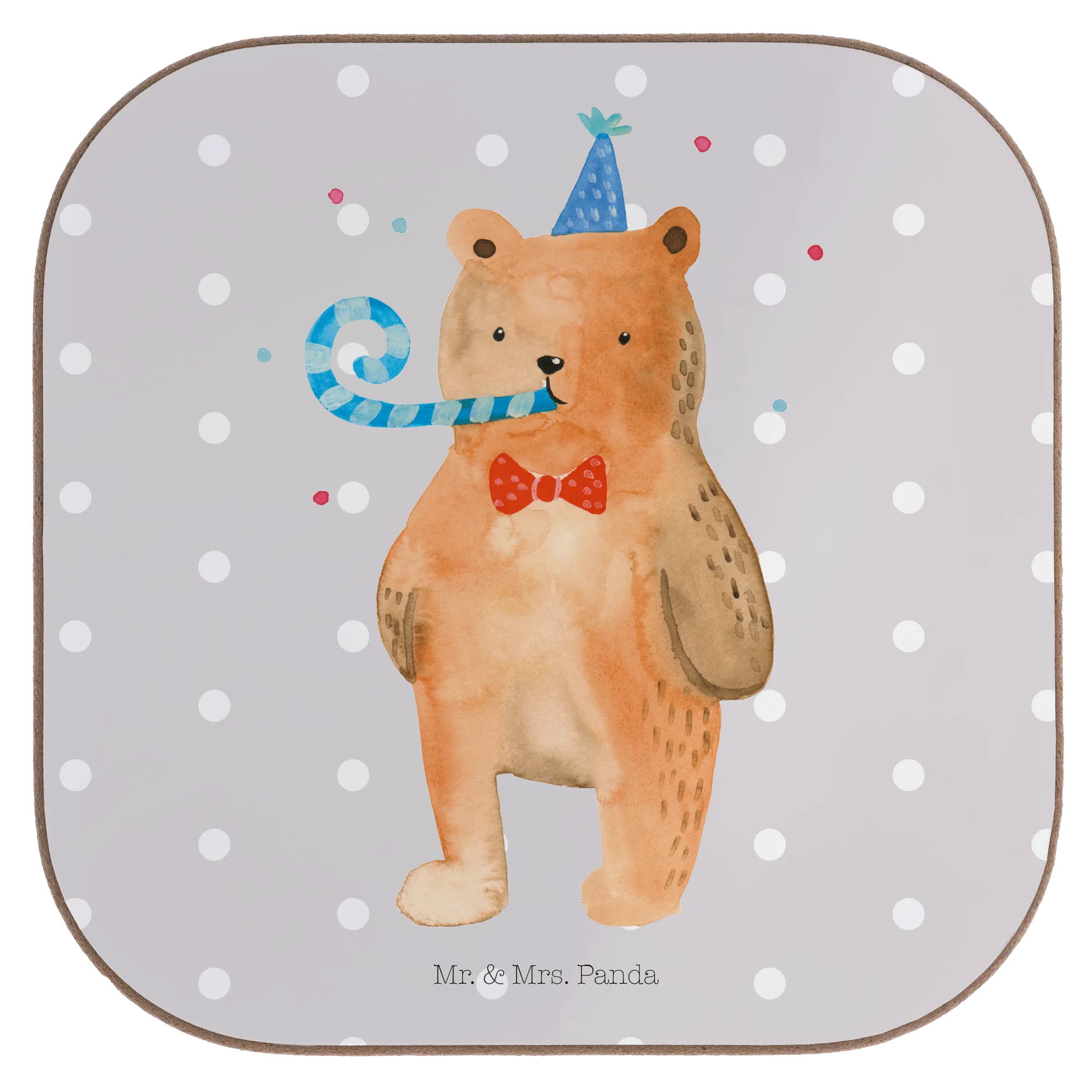Square coaster bear Birthday - with saying - Pastel Gray