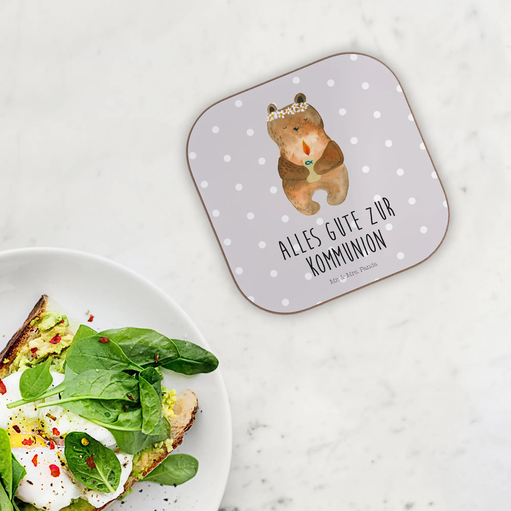 Ein kleines Geschenk mit großer Bedeutung: Unser quadratischer Untersetzer "Kommunion-Bär" von Mr. & Mrs. Panda ist das ideale Kommunion Geschenk für Kinder und Familien. Der niedliche Bär mit Blumenkrone und Kerze symbolisiert Leben und Licht, begleitet von dem herzlichen Schriftzug „Alles Gute zur Kommunion“.