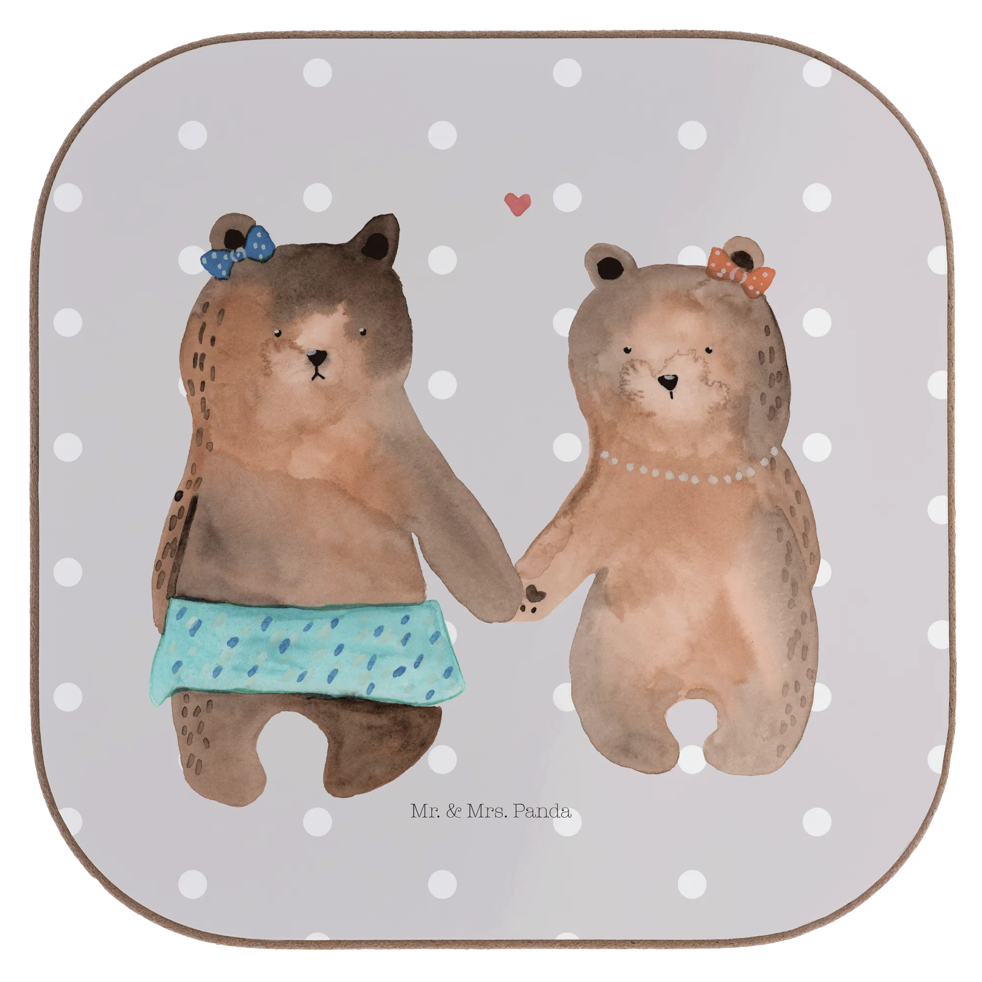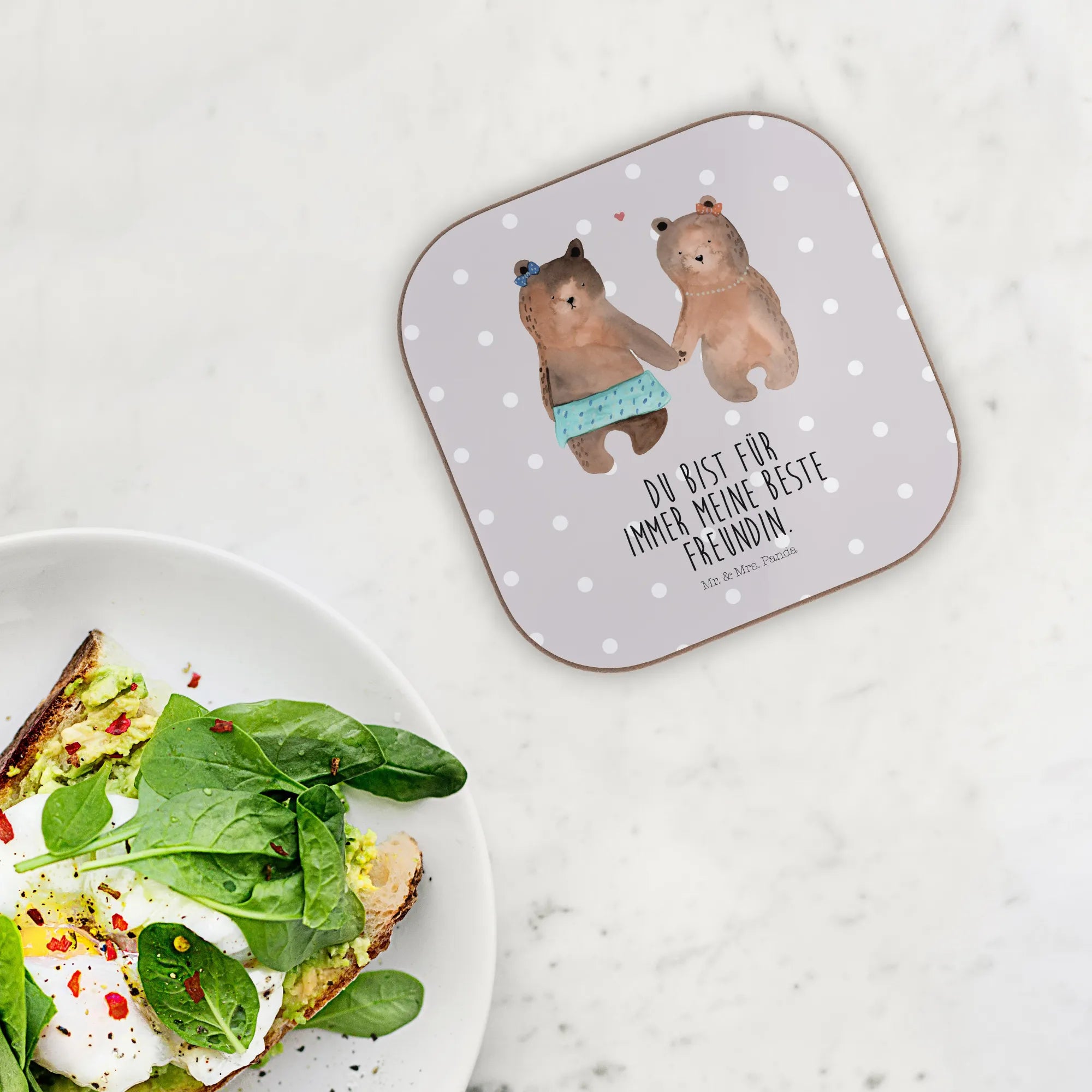 Square coaster bear Girlfriend - with saying - Grey Pastel