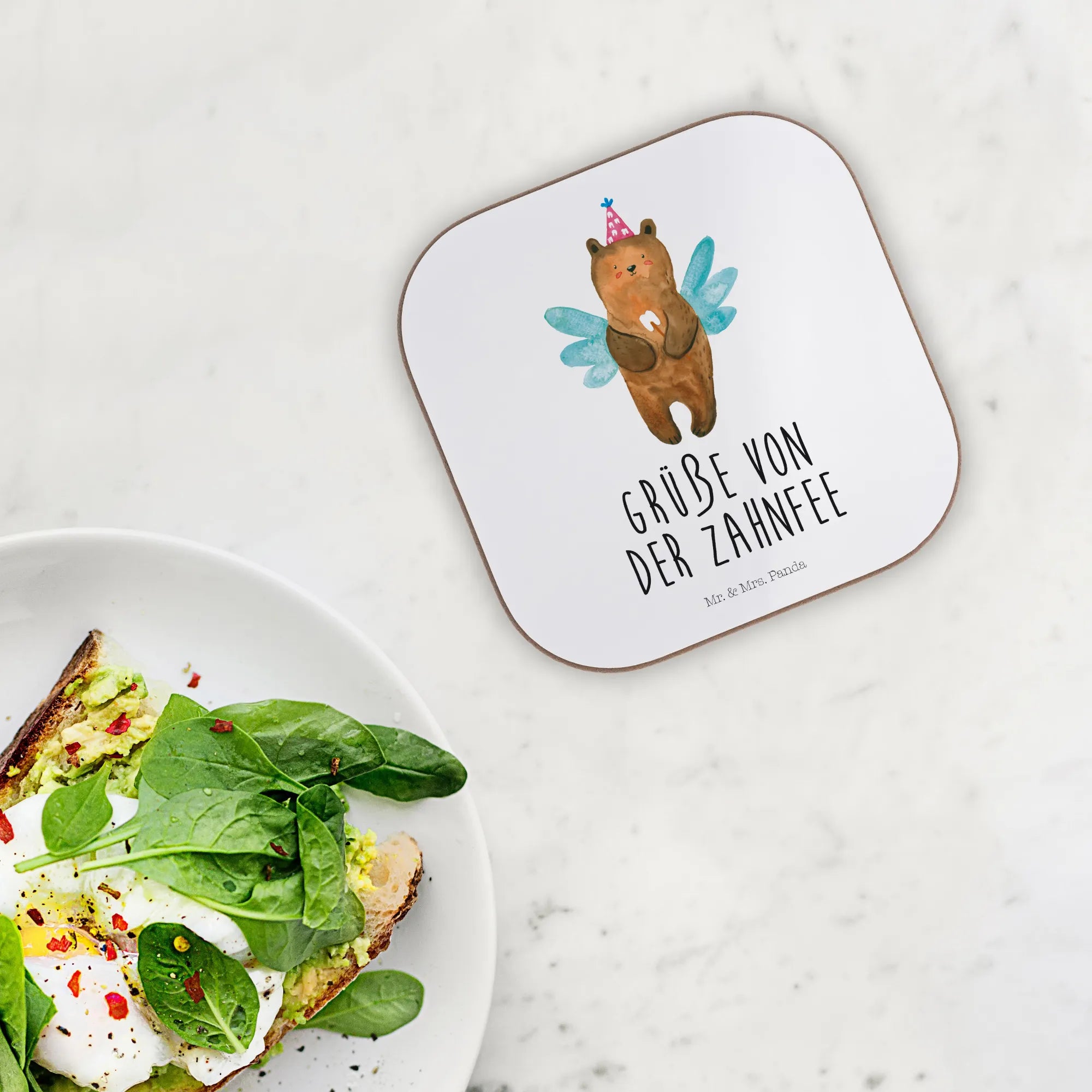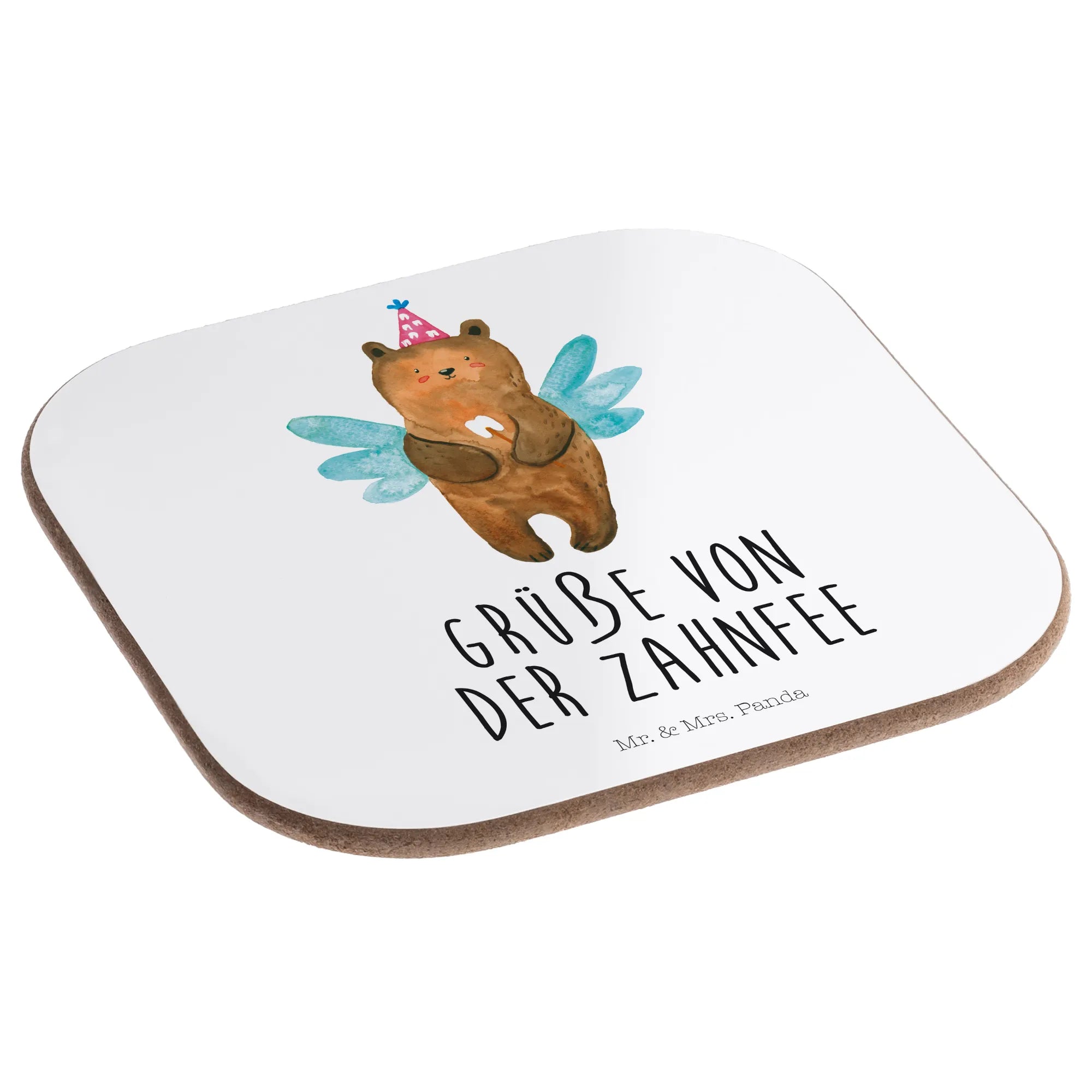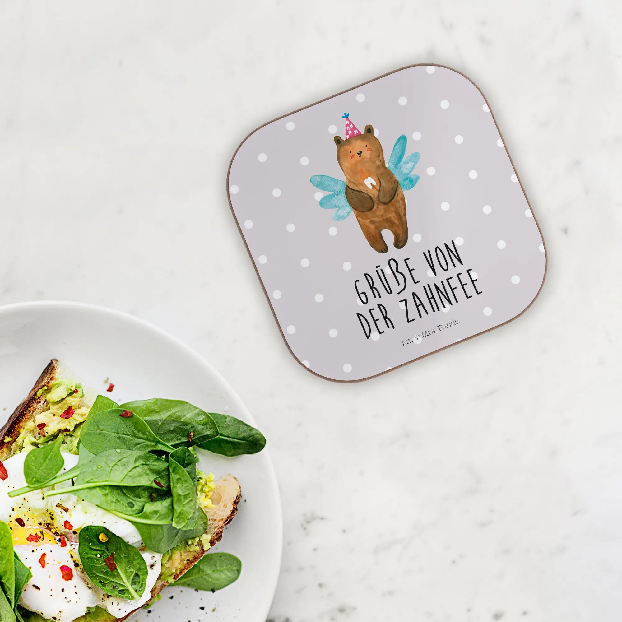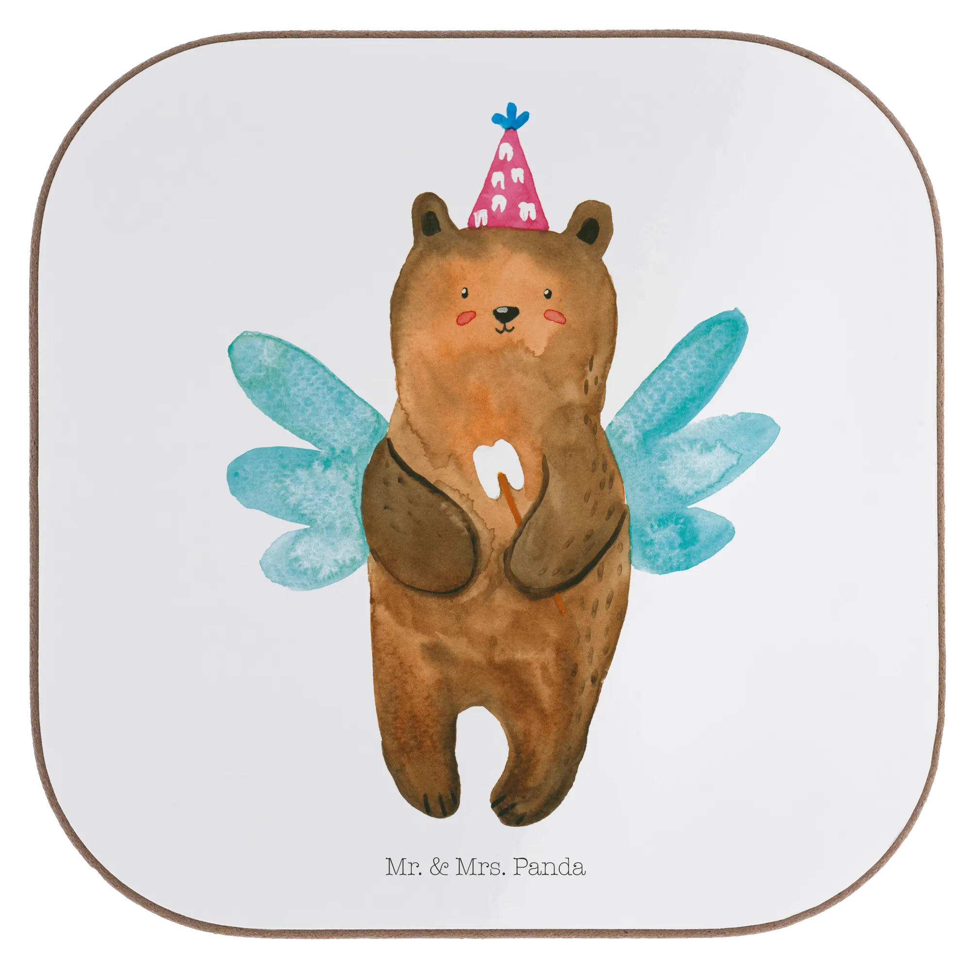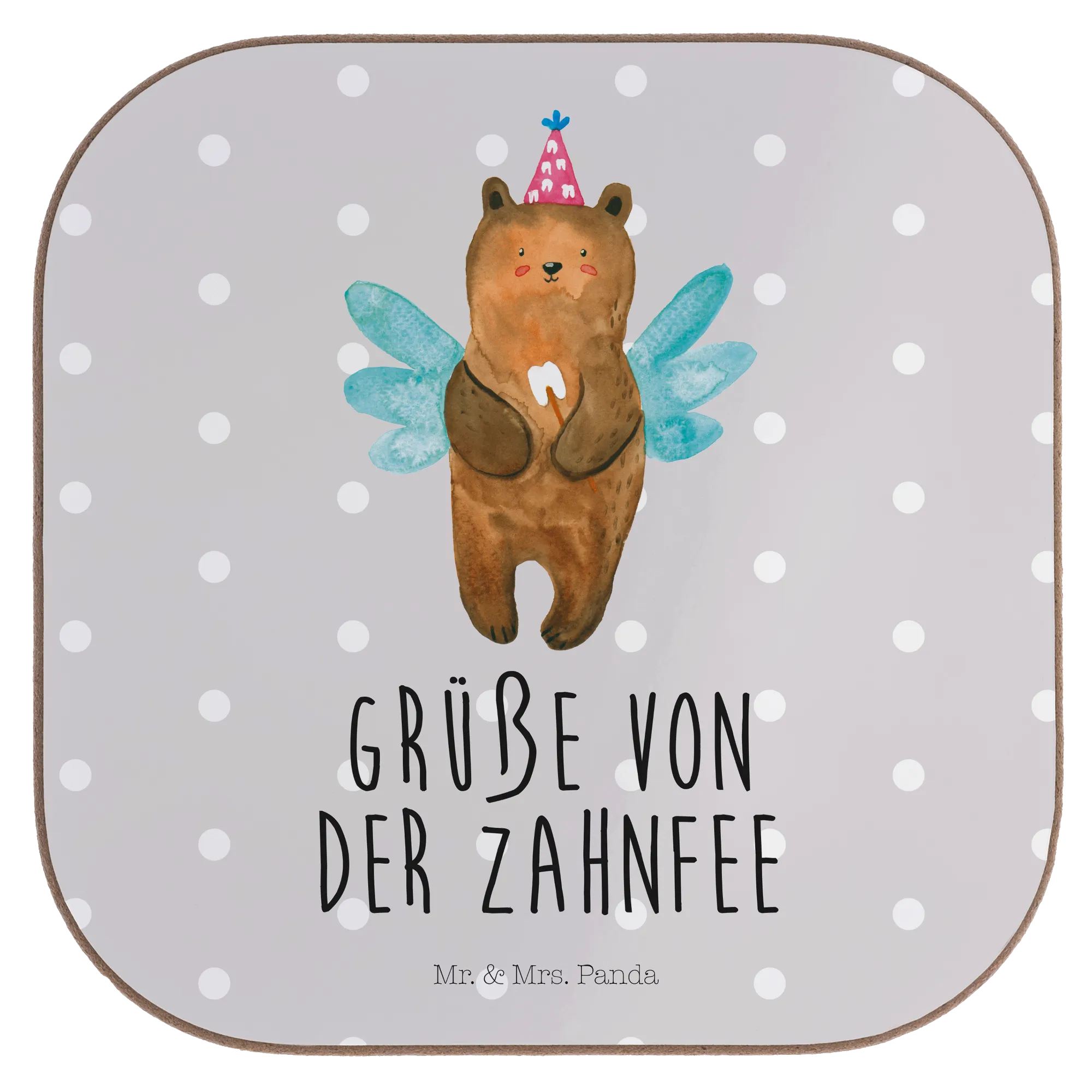 Square coaster bear tooth fairy - with saying - Pastel Gray