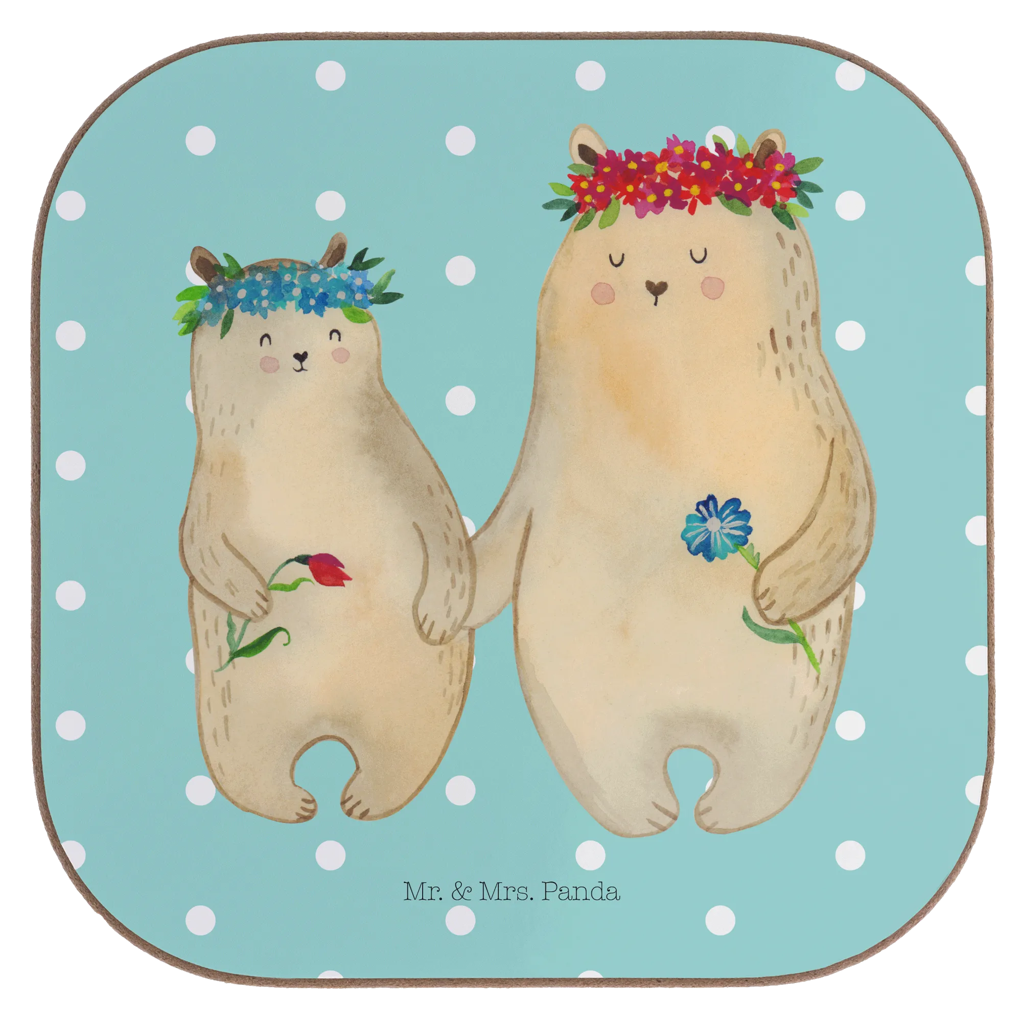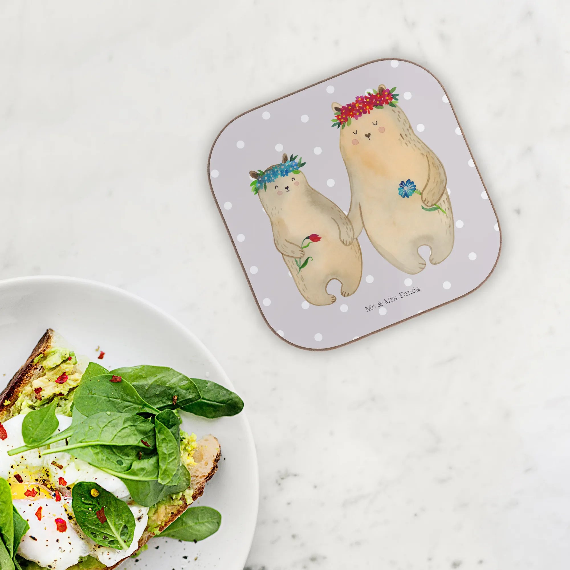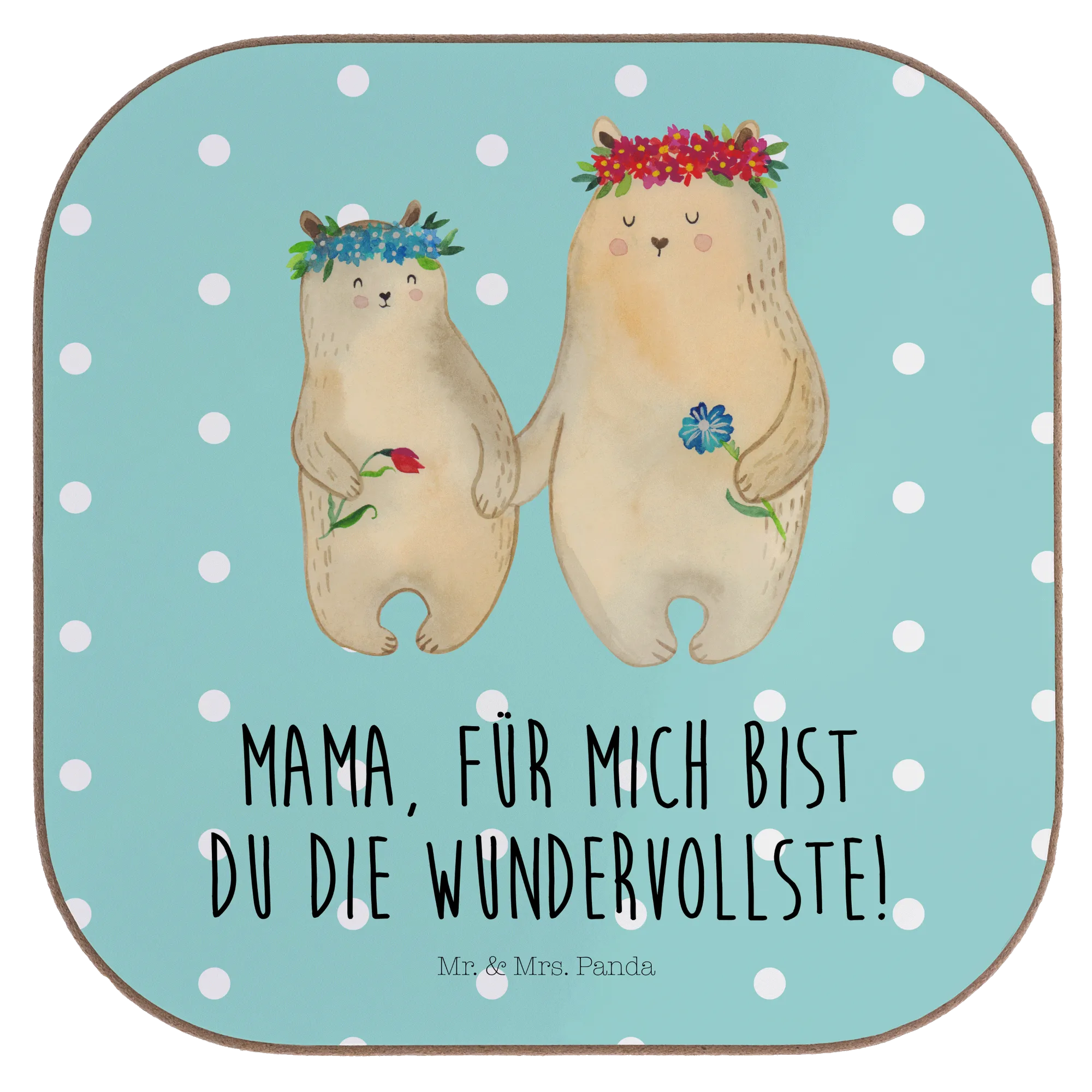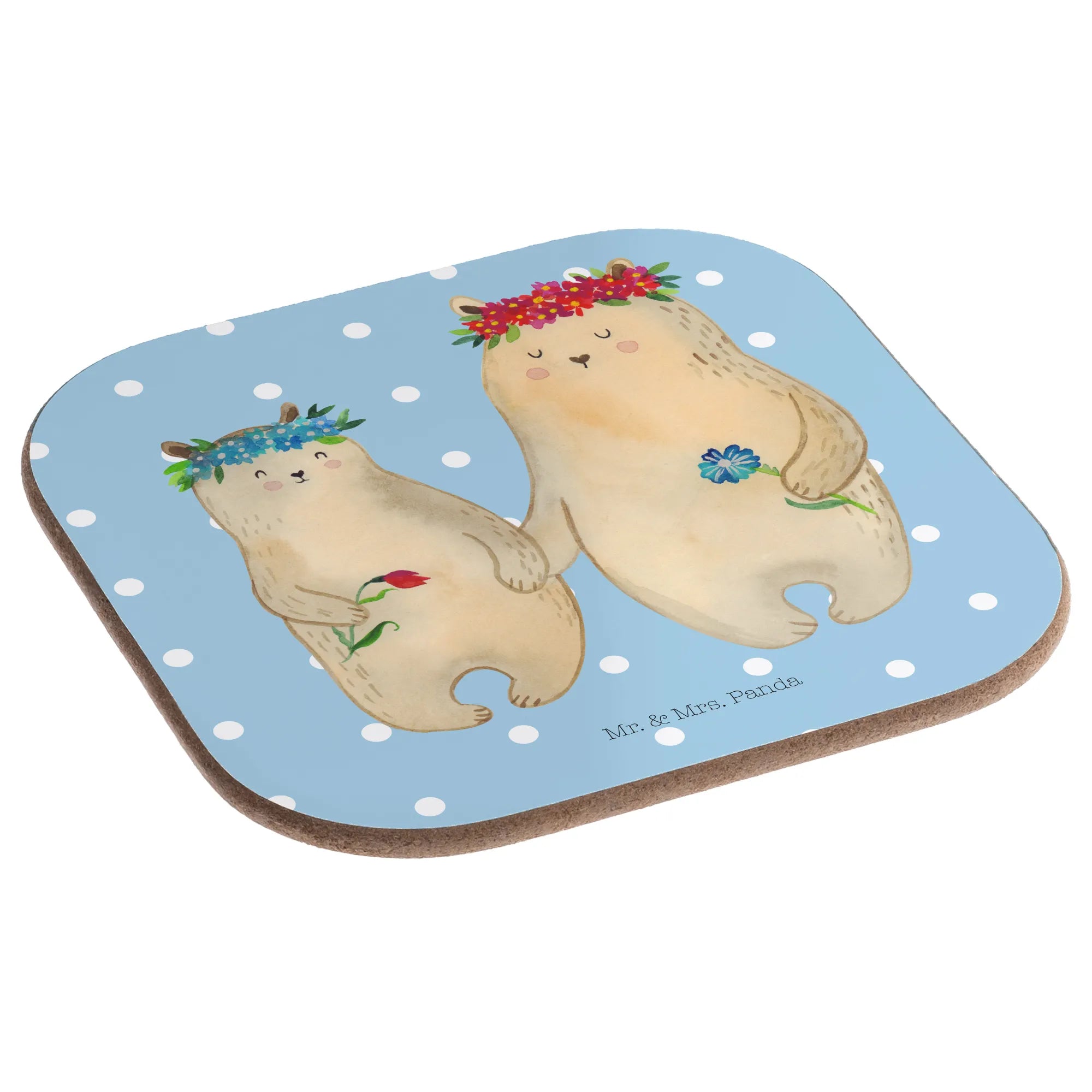 Square coaster Bears with flower crown - with a saying - Blue Pastel