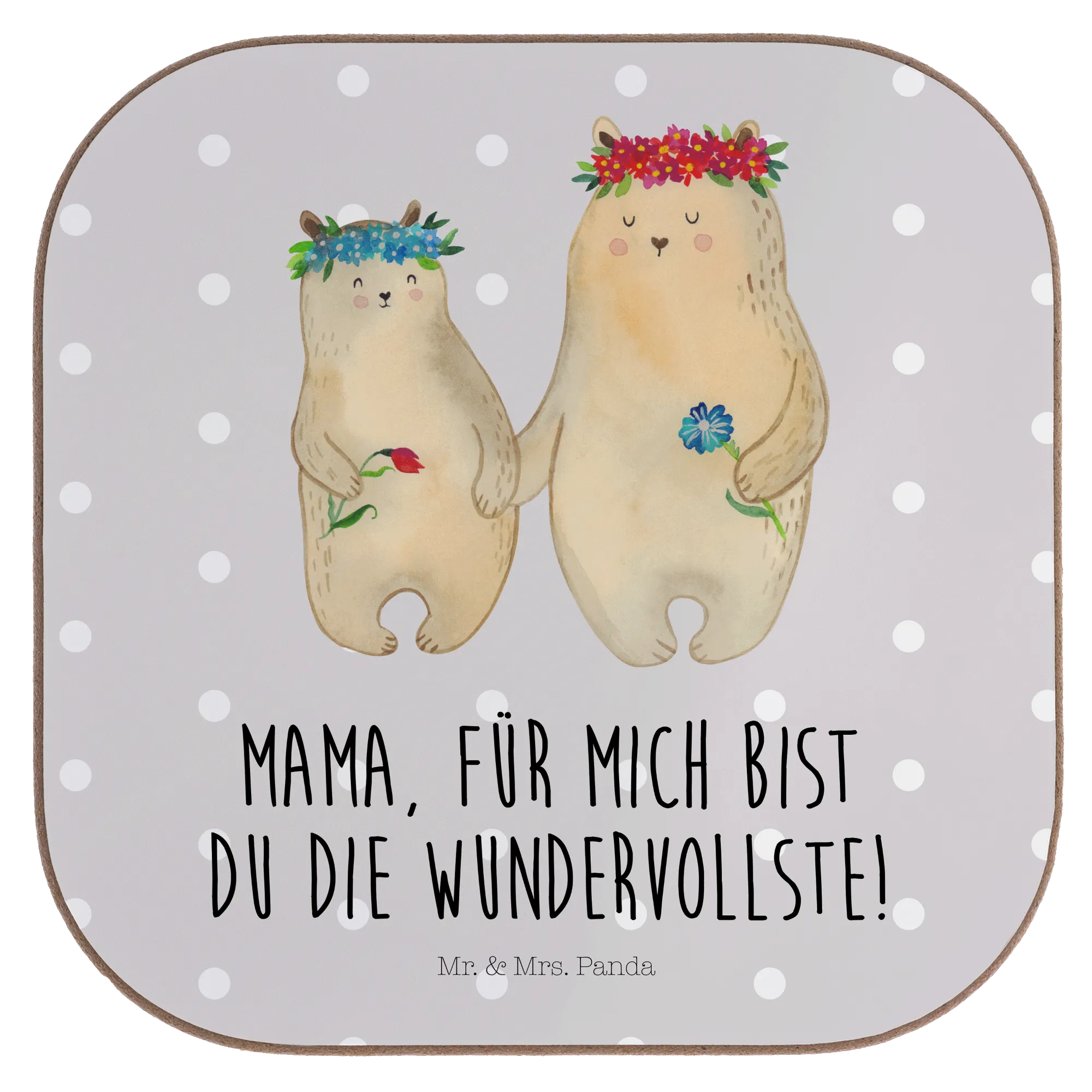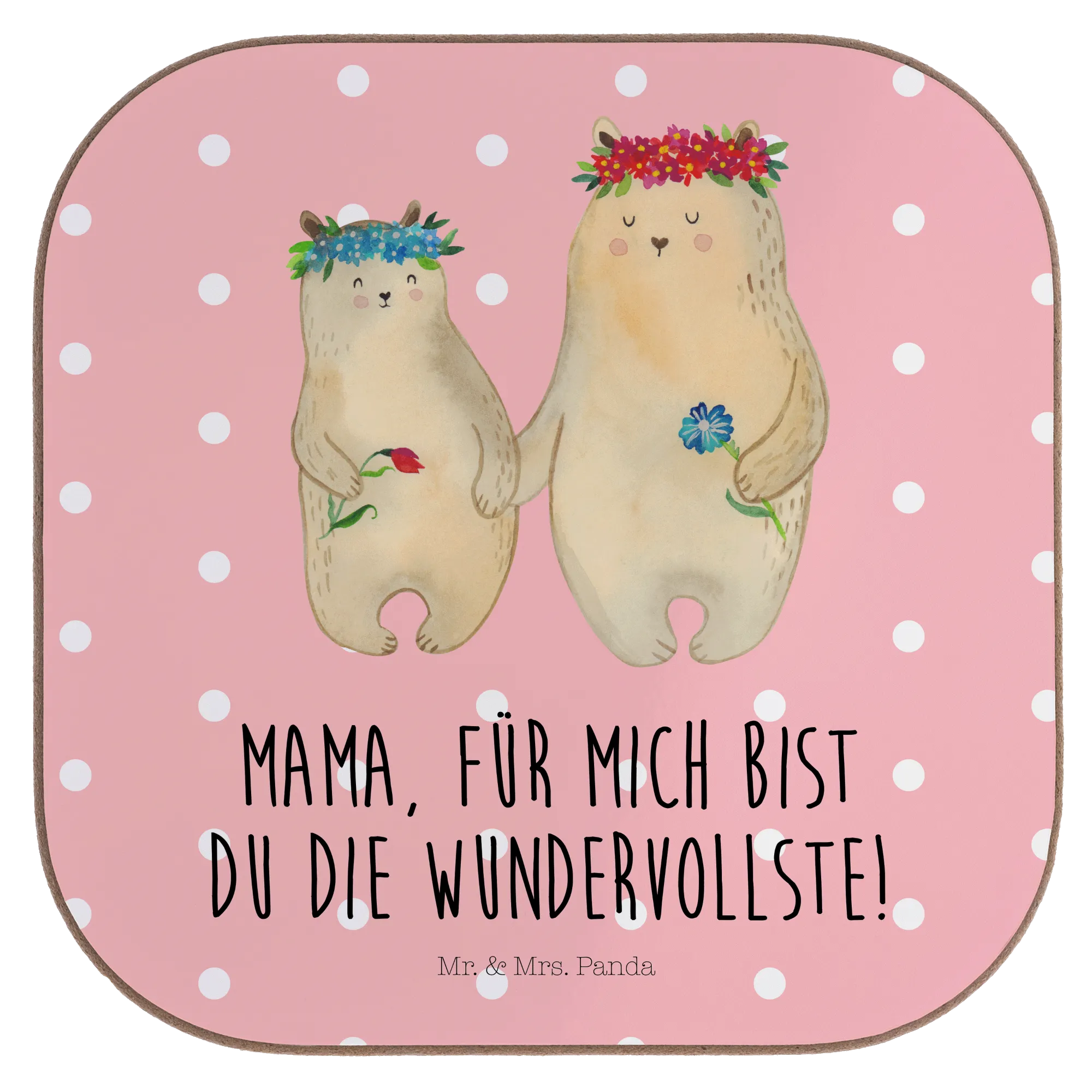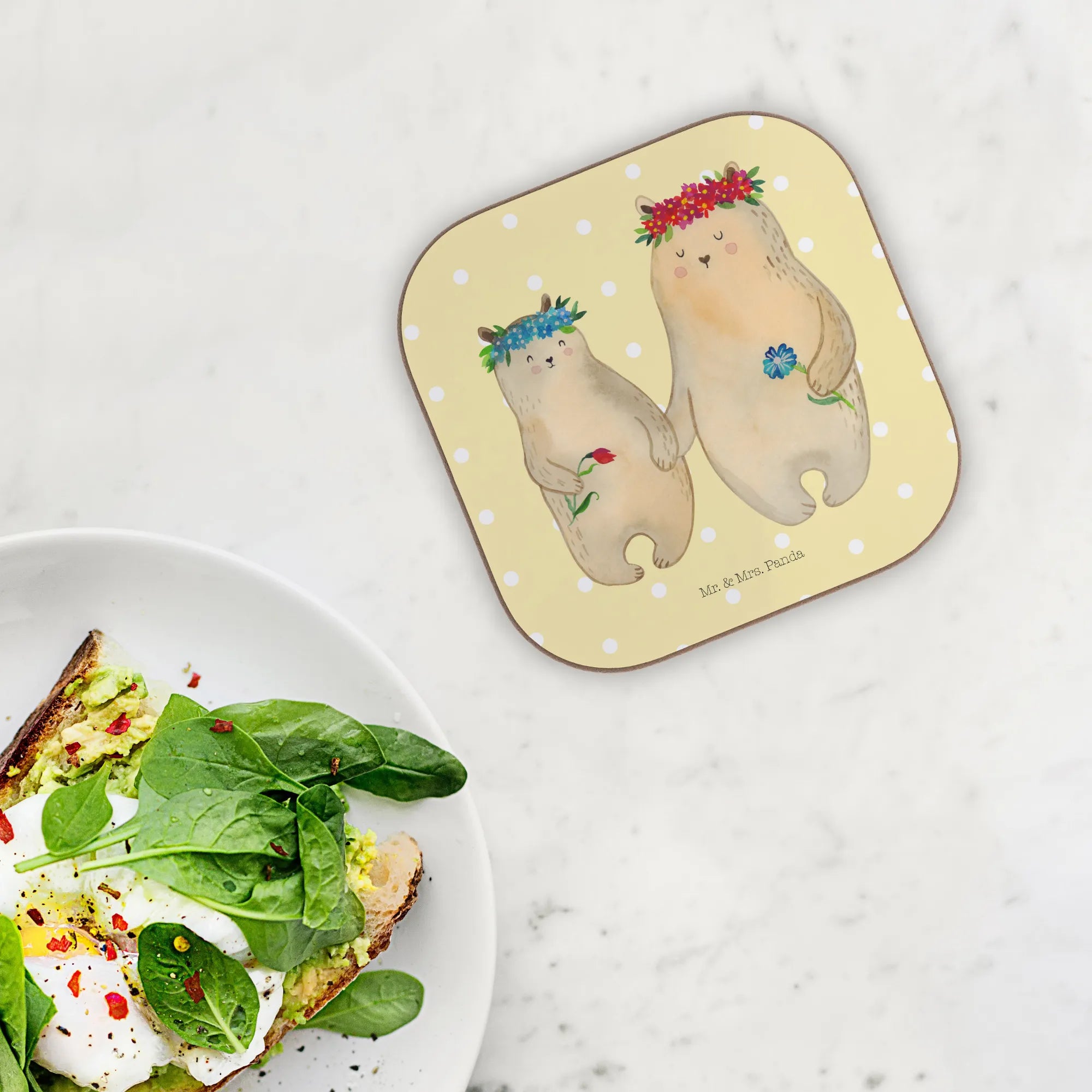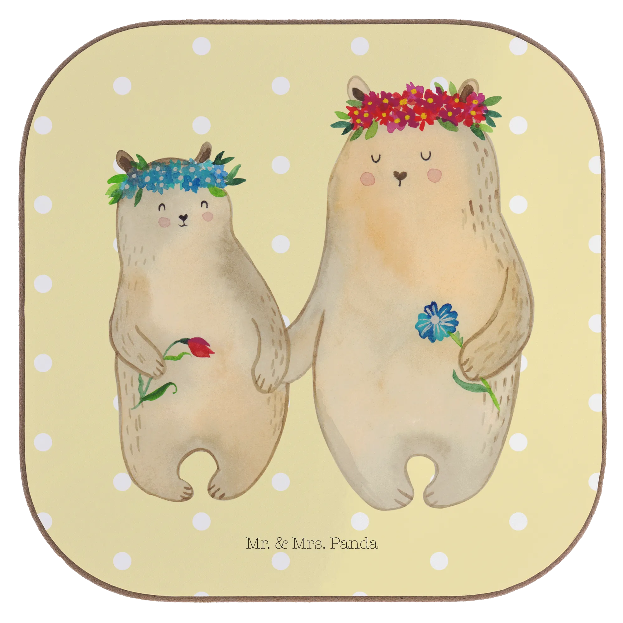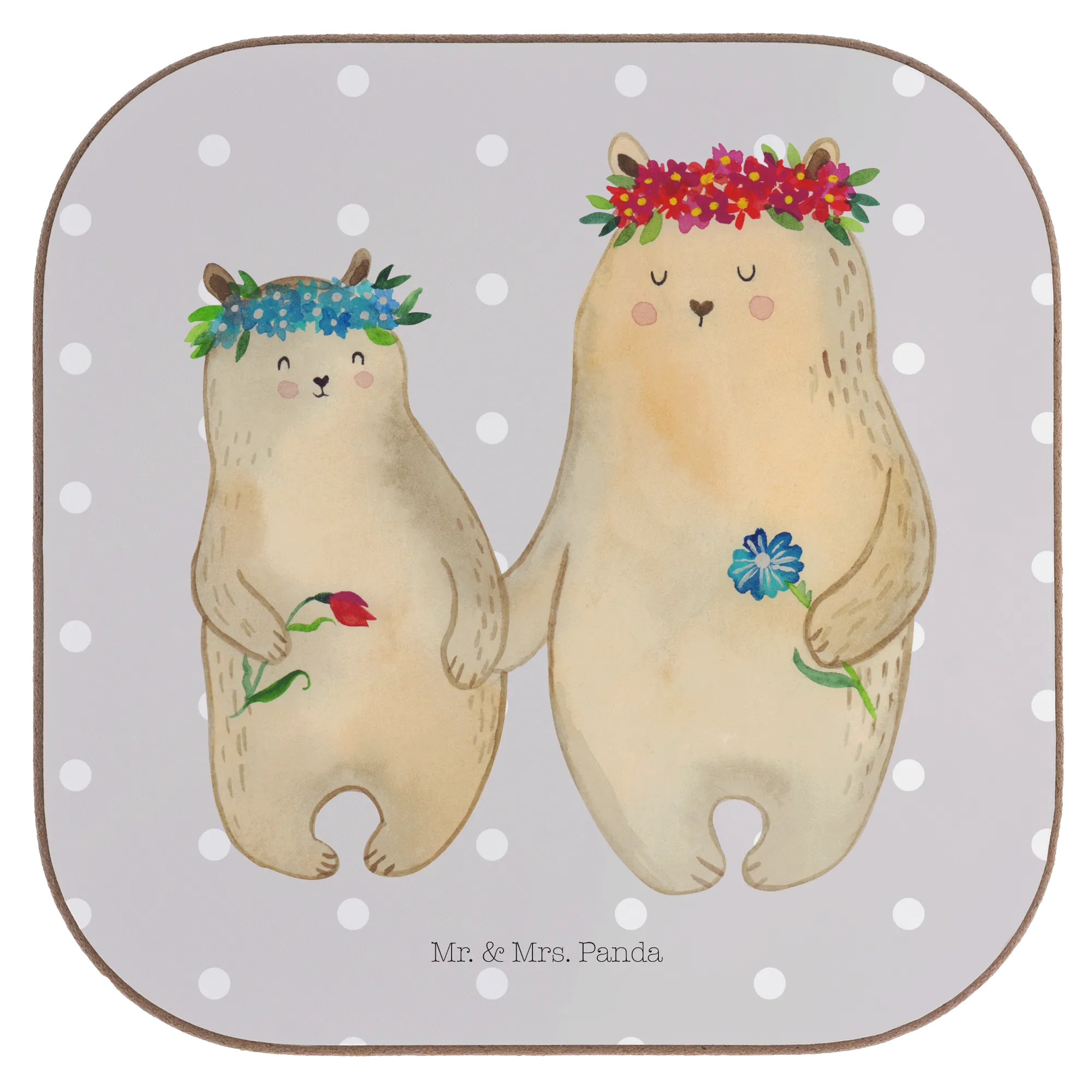 Square coaster Bears with flower crown - with a saying - Blue Pastel
