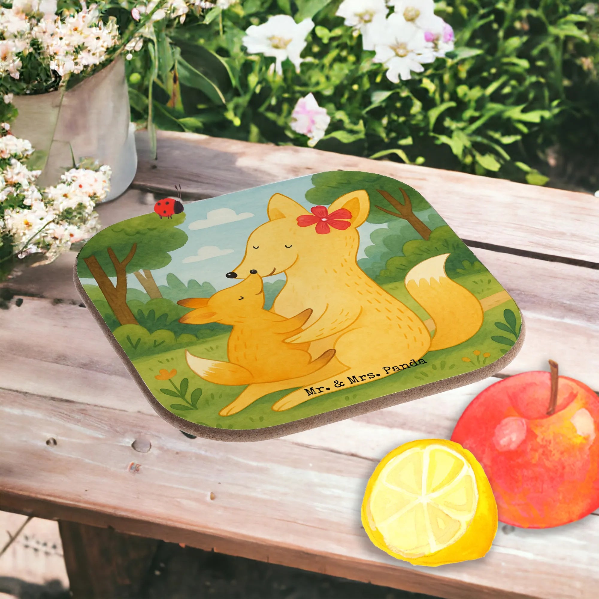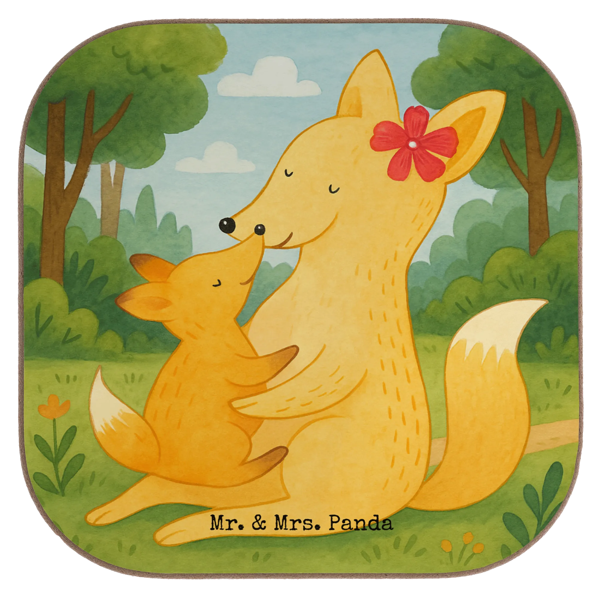 Square coaster Fox mummy Design - with a saying
