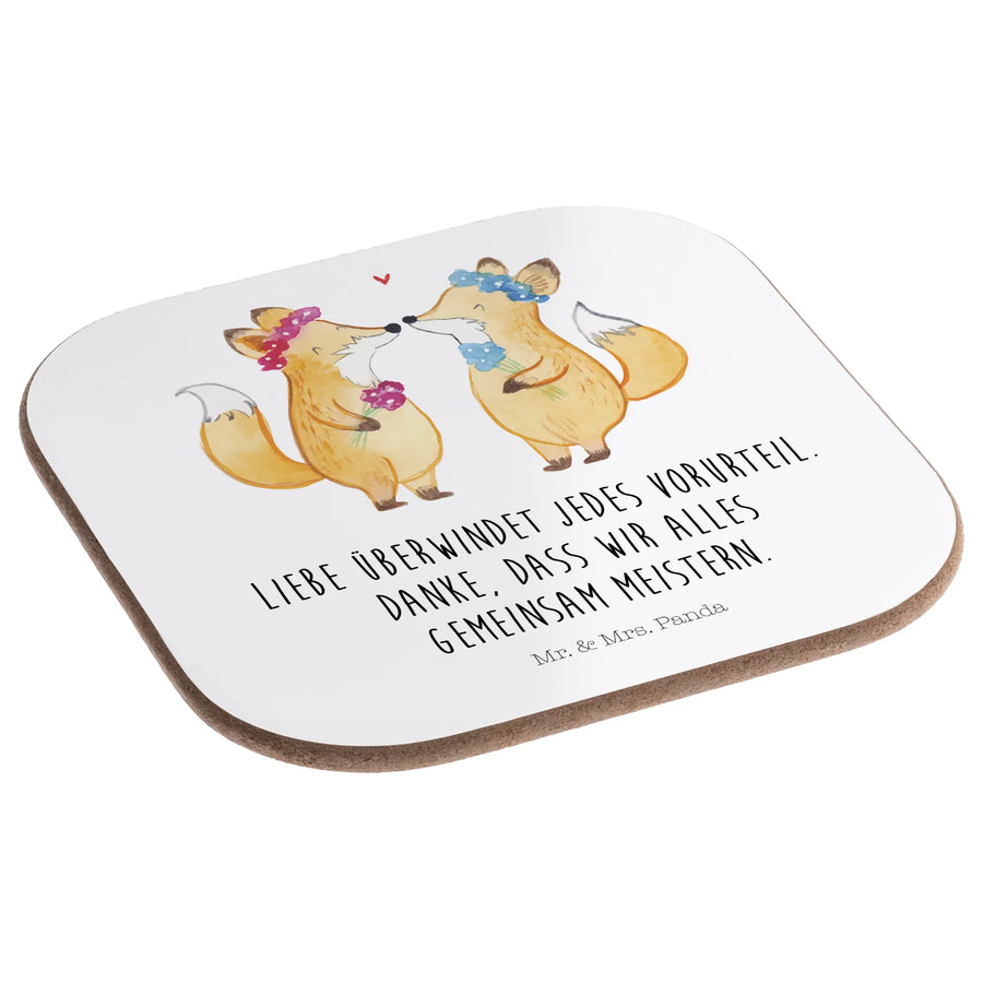 In a world where love knows no bounds, our charming motif features two sweet and cute foxes, both female, adorned with playful floral crowns and delicate veils. These lovely creatures stand close, holding paws as they express their love, reminding us that love conquers every prejudice. Their watercolor artistry flows with warmth and positivity, making it a beautiful celebration of LGBTQ+ pride. "Love transcends every prejudice. Thank you for conquering everything together." This saying is not just a motto; it’s a heartfelt reminder of the bond two souls can share, faced with the world together, hand in paw.