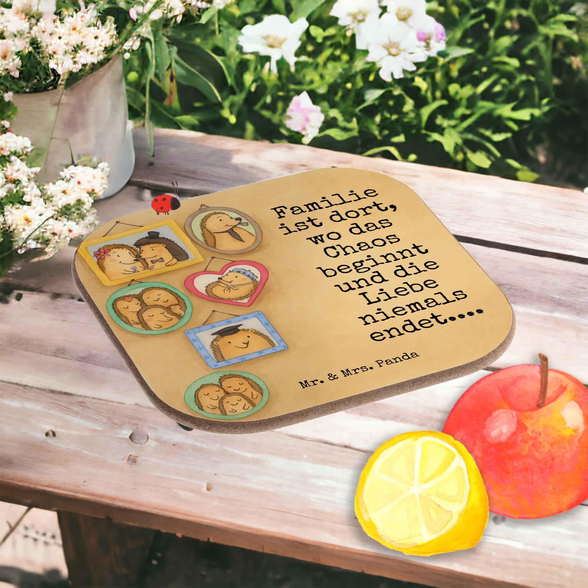 Square coaster Hedgehog family Design - with a saying