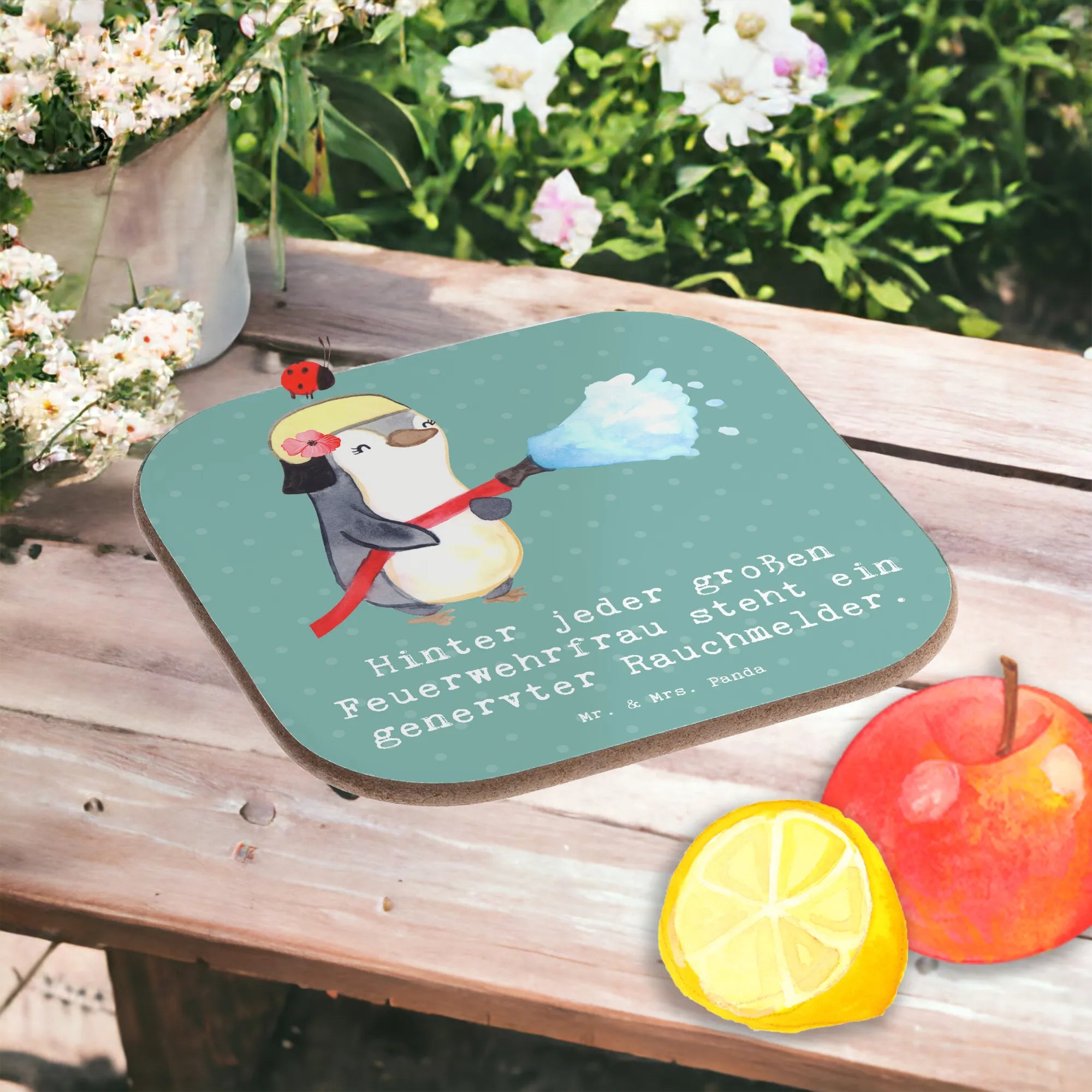 Square coaster Hinter jeder großen Feuerwehrfrau steht ein genervter R – Mr. & Mrs. Panda