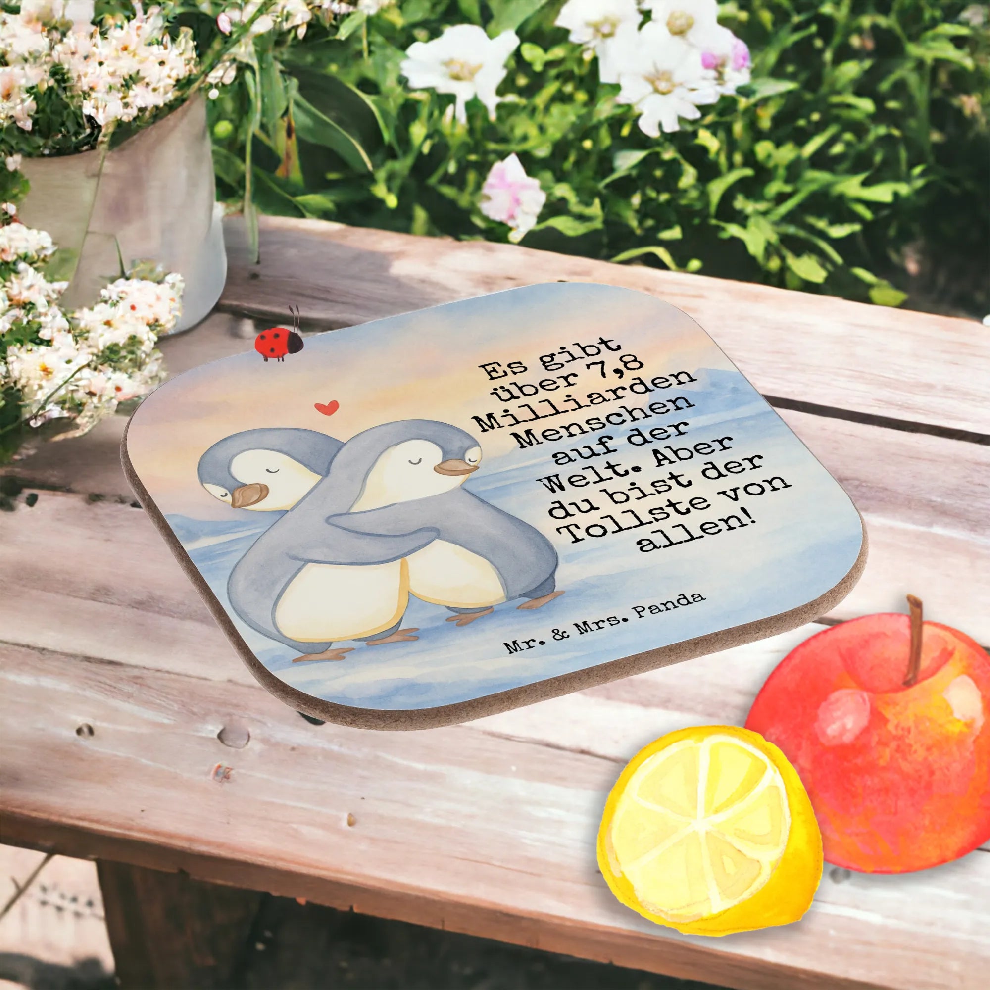 Auf dem Untersetzer steht der Spruch: „Es gibt über 7,8 Milliarden Menschen auf der Welt. Aber du bist der Tollste von allen!" – eine charmante Botschaft, die direkt ins Herz trifft und das Geschenk besonders persönlich macht.