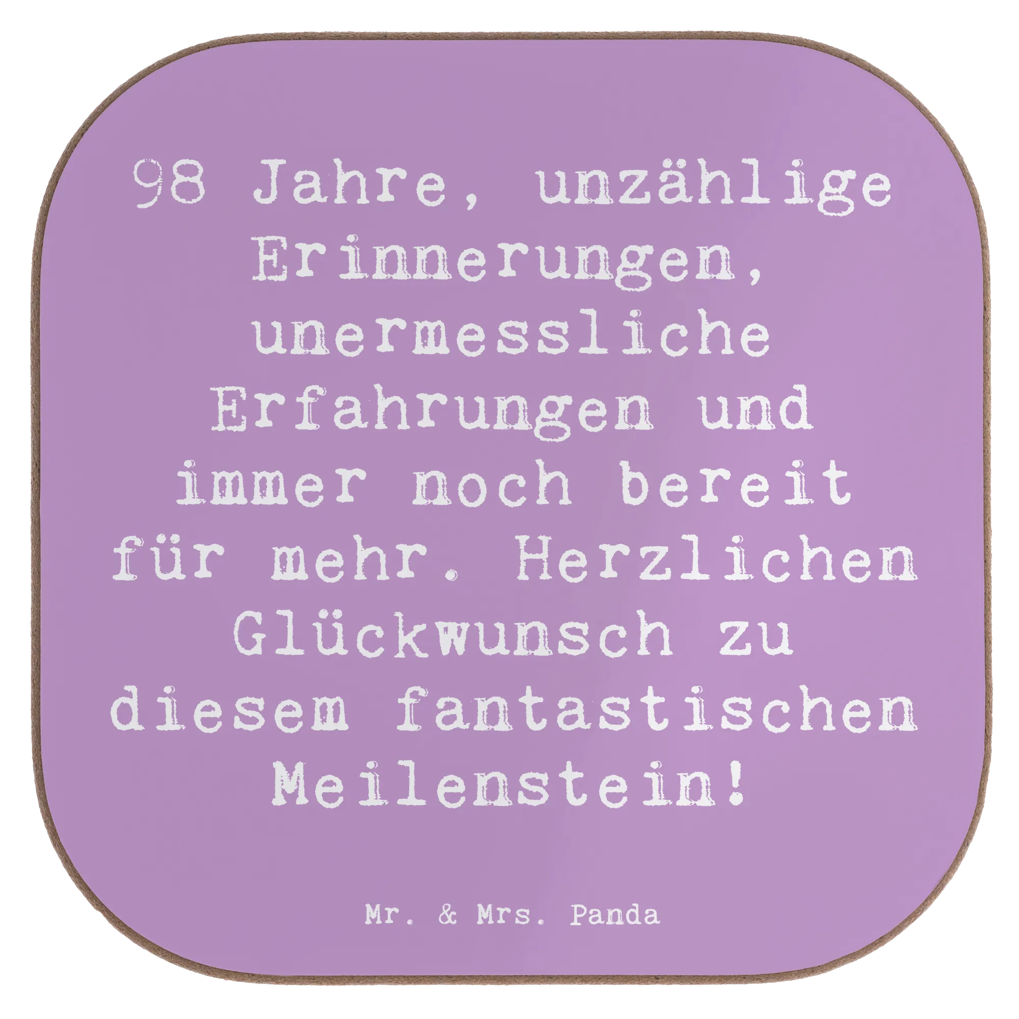 Square coaster Saying 98 Jahre, unzählige Erinnerungen, unermessliche Erfahrungen und immer noch bereit für mehr. Herzlichen Glückwunsch zu diesem fantastischen Meilenstein! - Sea Breeze