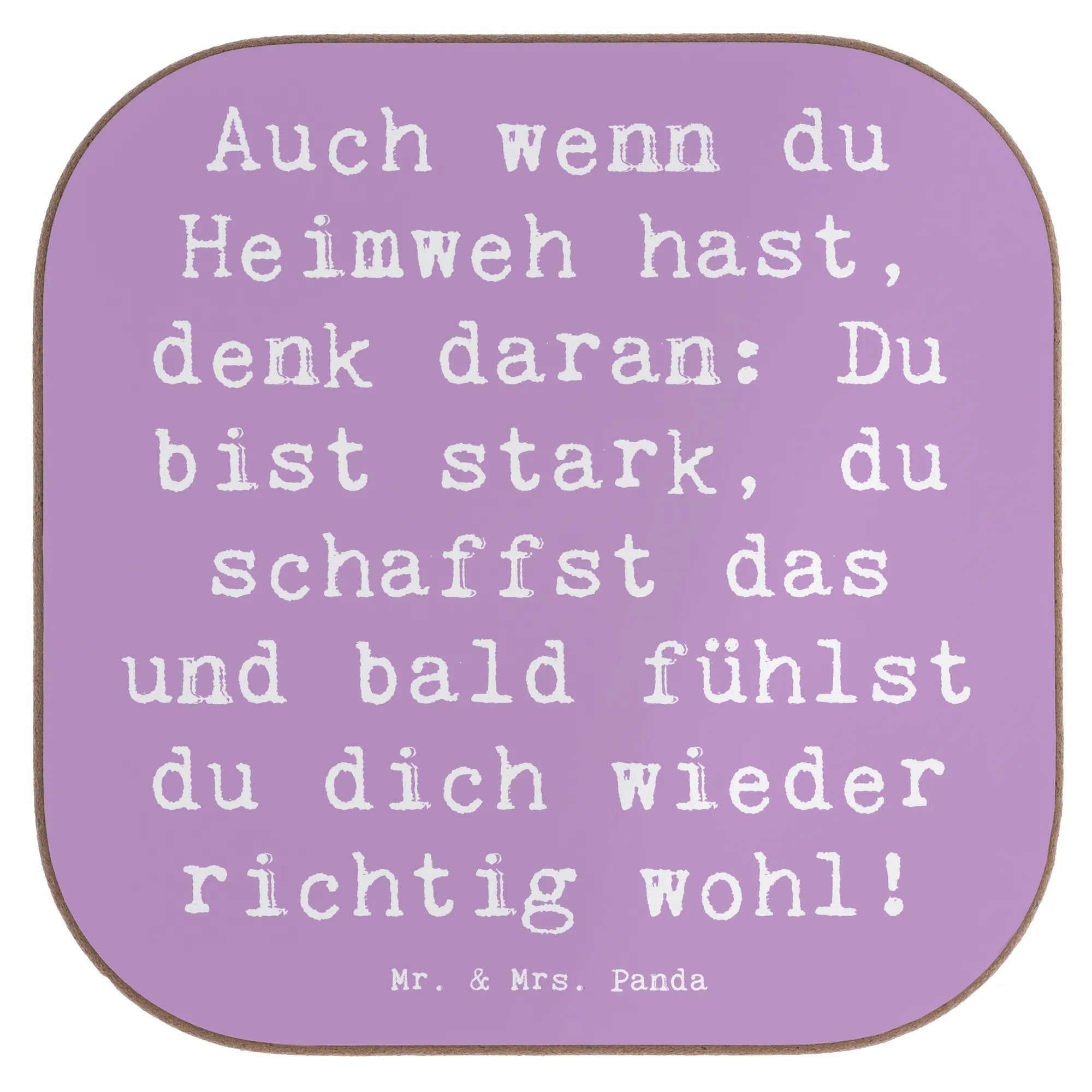Ein wunderschöner quadratischer Untersetzer von Mr. & Mrs. Panda – schön gestaltet, praktischer Begleiter und ein echter Mutmacher. Der Untersetzer „Heimweh überwinden“ trägt den herzlichen Spruch: „Auch wenn du Heimweh hast, denk daran: Du bist stark, du schaffst das und bald fühlst du dich wieder richtig wohl!“ und schenkt so Trost und Zuversicht an jedem Tag.