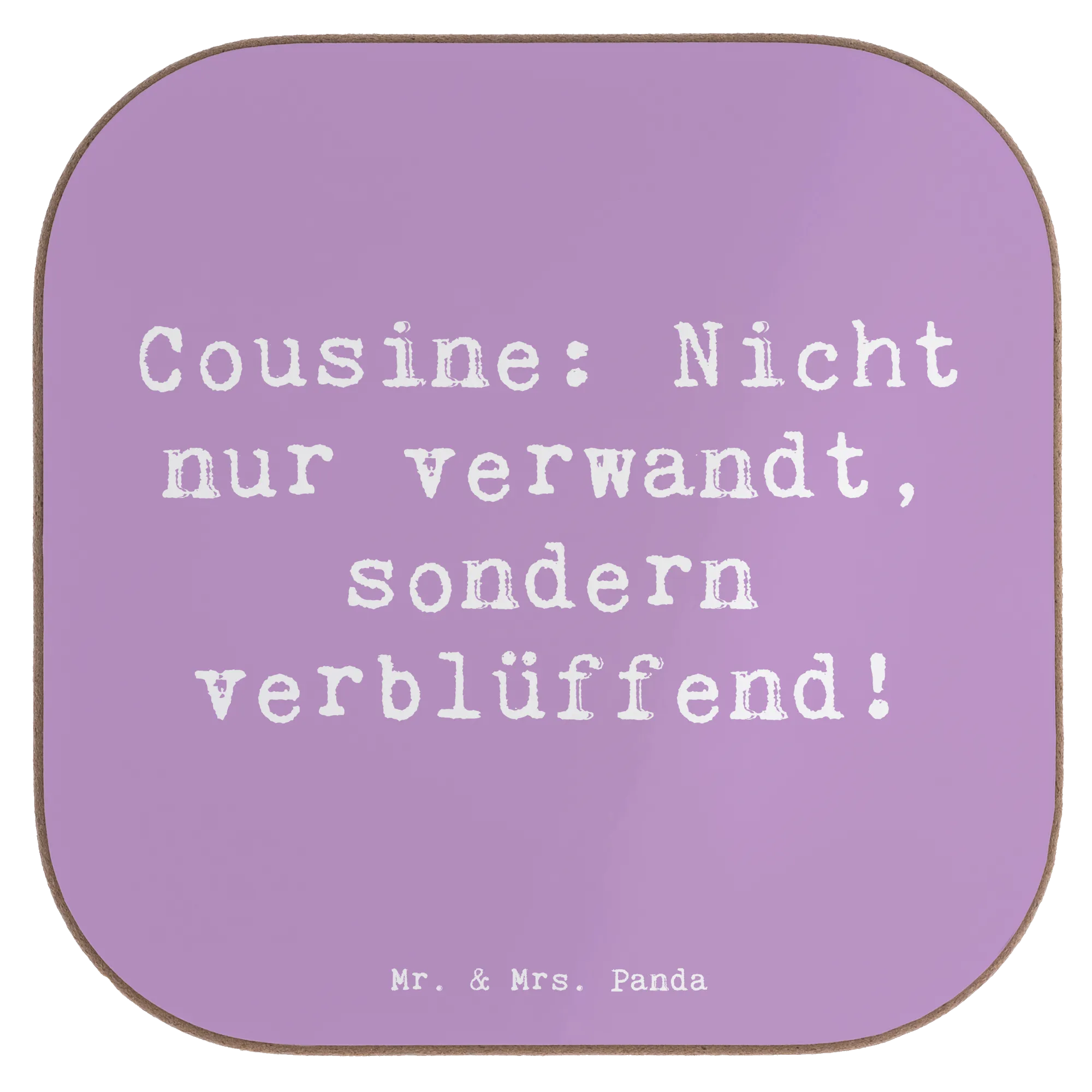 Square coaster Saying Cousine: Nicht nur verwandt, sondern verblüffend – Mr. & Mrs. Panda