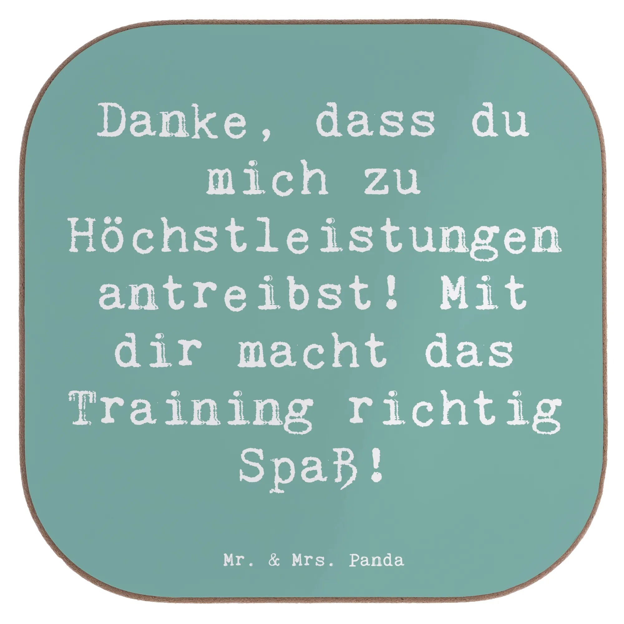 Square coaster Saying Danke, dass du mich zu Höchstleistungen antreibst! Mit dir macht das Training richtig Spaß!