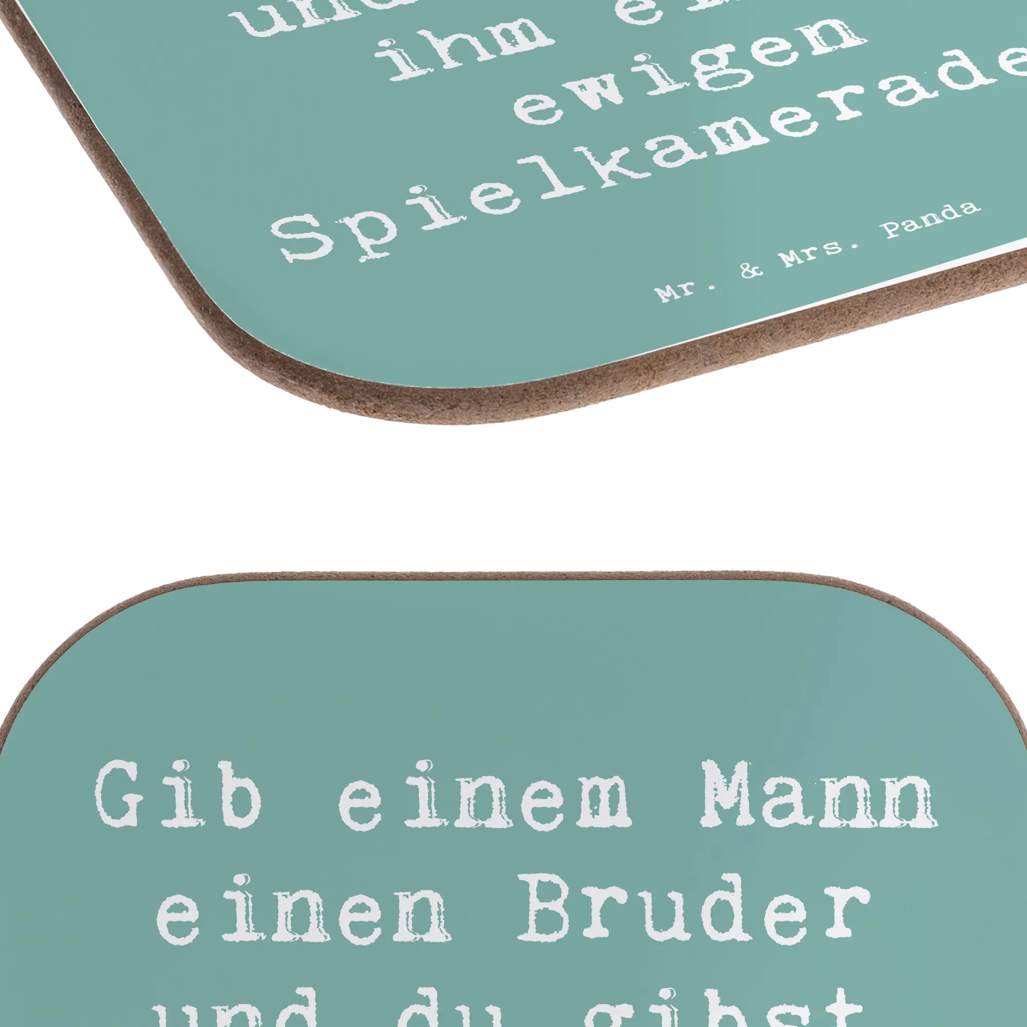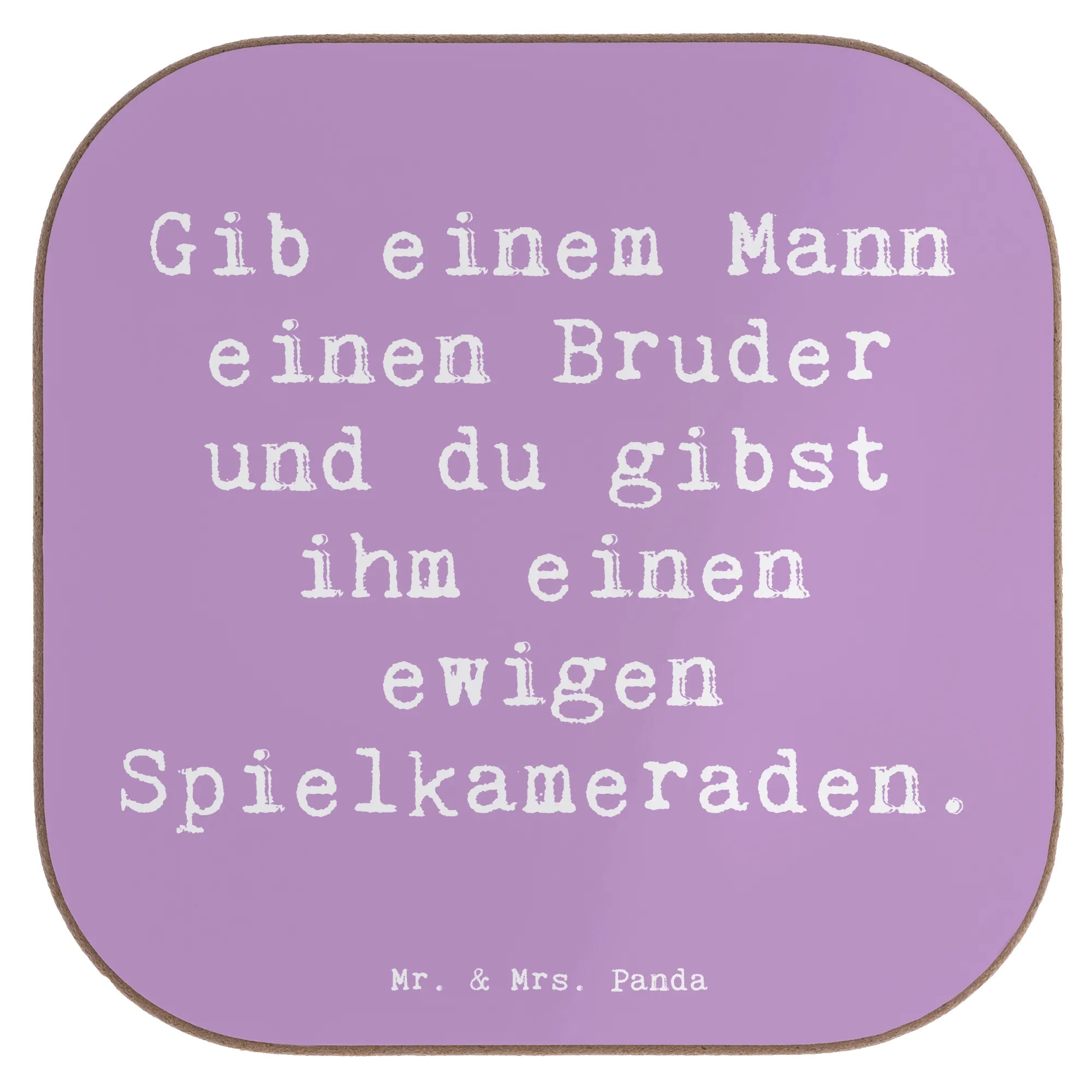 Square coaster Saying Gib einem Mann einen Bruder und du gibst ihm einen ewigen Spielkameraden.