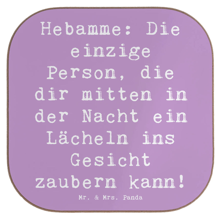 Square coaster Saying Hebamme: Die einzige Person, die dir mitten in der Nacht ein Lächeln ins Gesicht zaubern kann! - Carton 300 grams - Lavender Dream