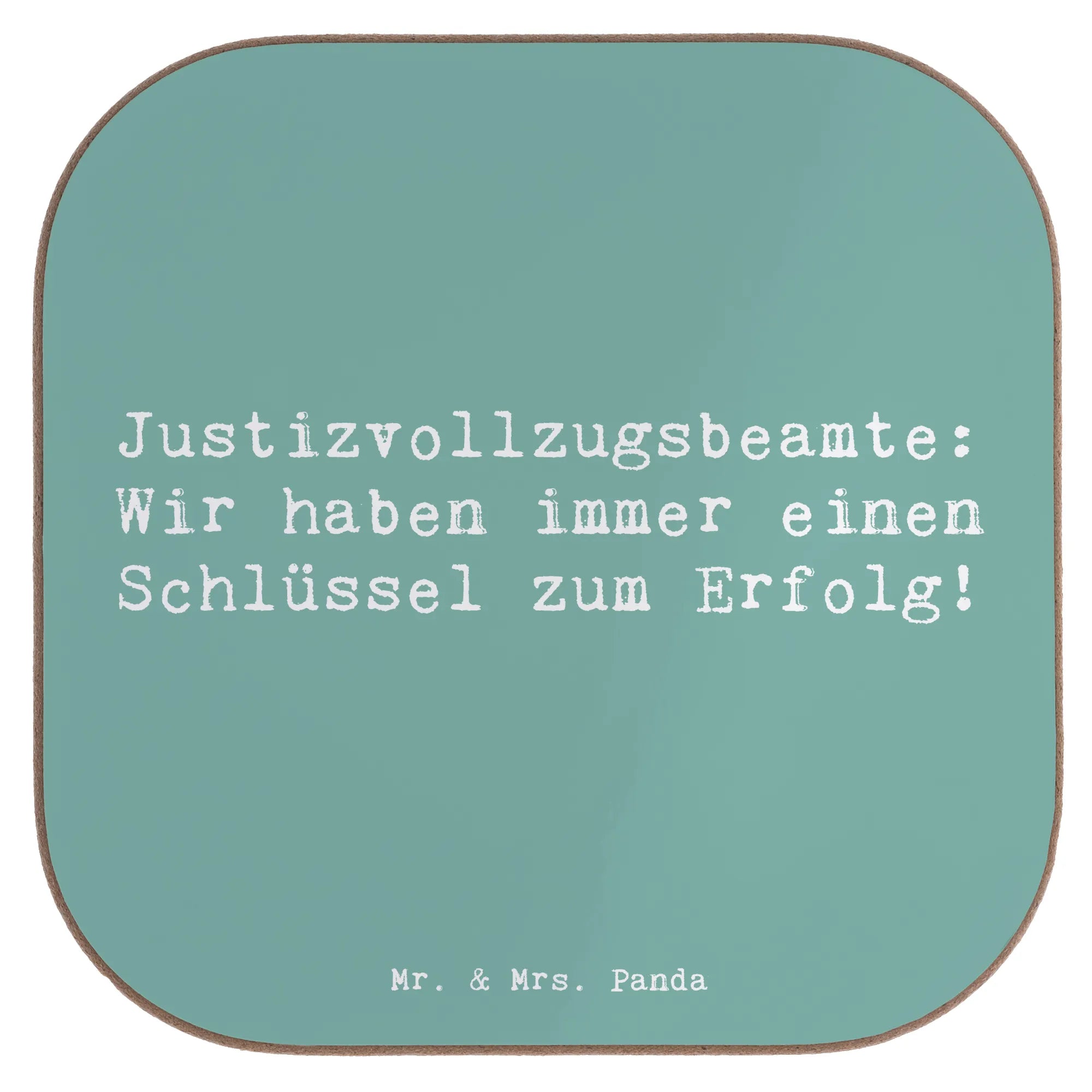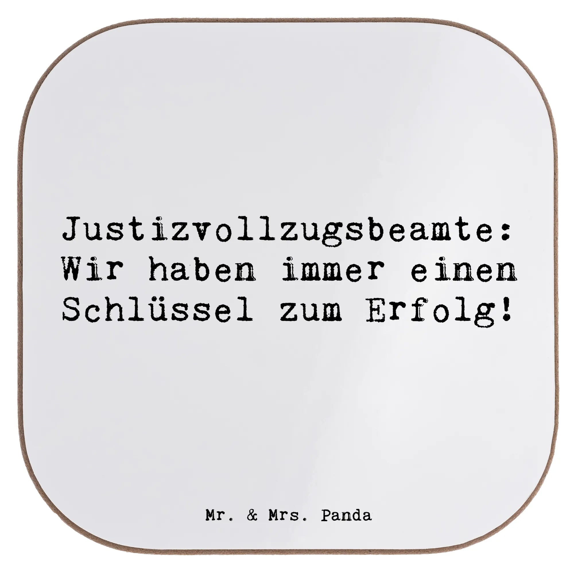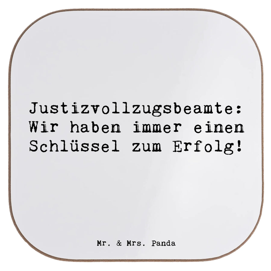 Square coaster Saying Justizvollzugsbeamte: Wir haben immer einen Schlüssel zum Erfolg! - White