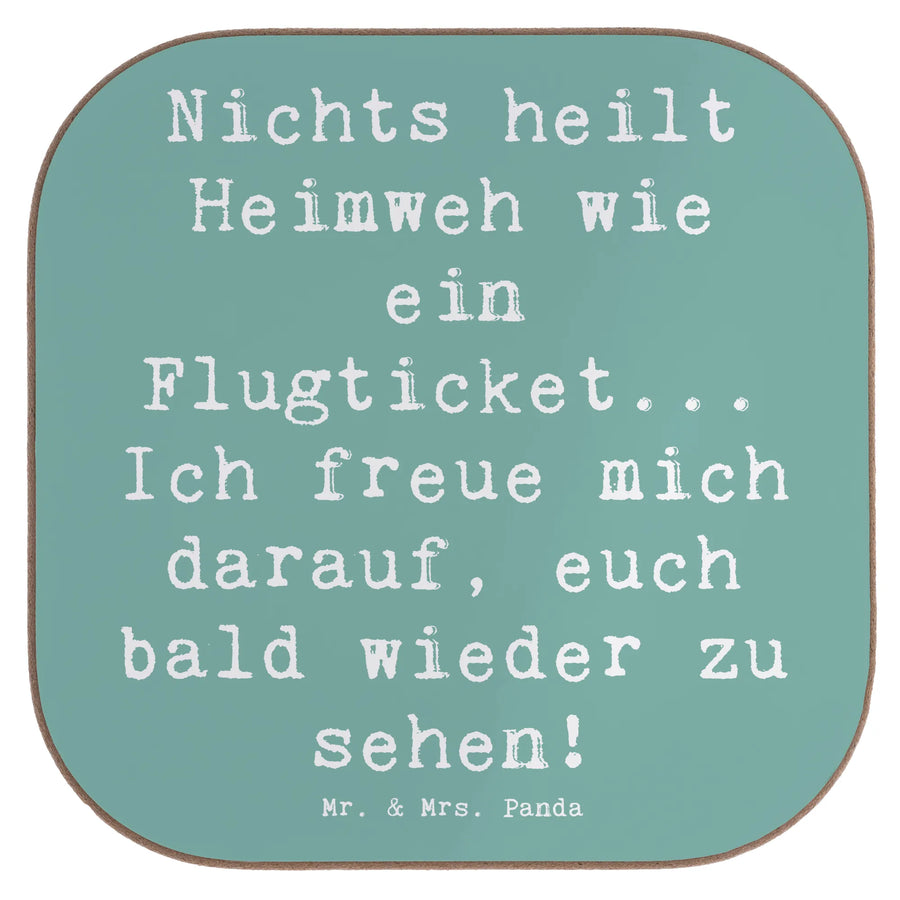 Square coaster Saying Nichts heilt Heimweh wie ein Flugticket... Ich f – Mr. & Mrs. Panda