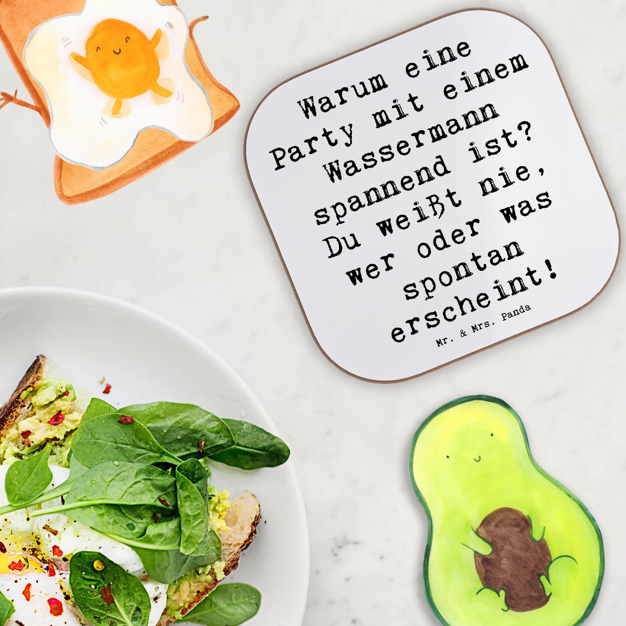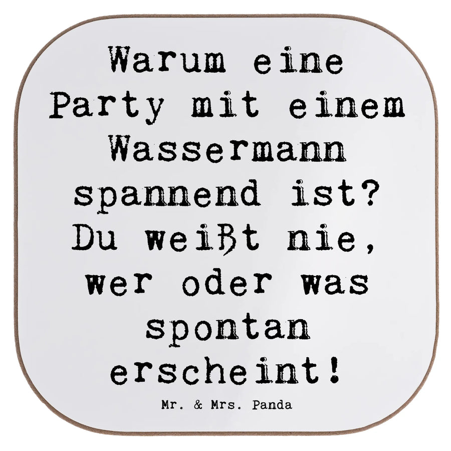 Square coaster Saying Warum eine Party mit einem Wassermann spannend ist? Du weißt nie, wer oder was spontan erscheint!