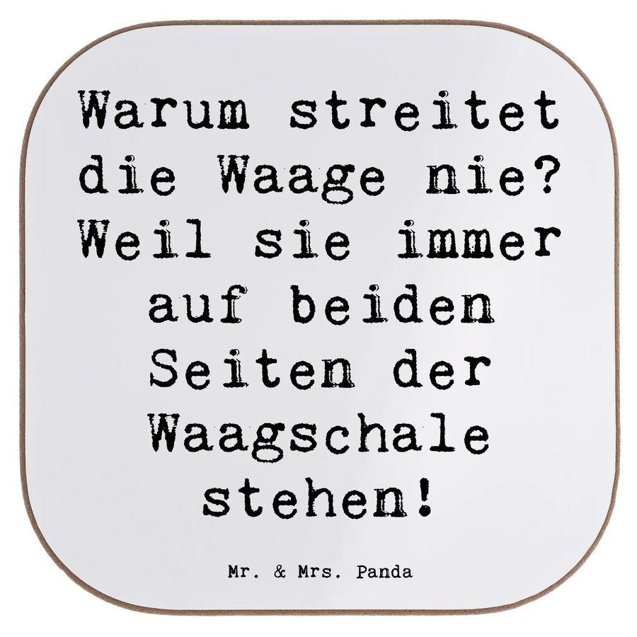 Square coaster Saying Warum streitet die Waage nie? Weil sie immer auf beiden Seiten der Waagschale stehen!