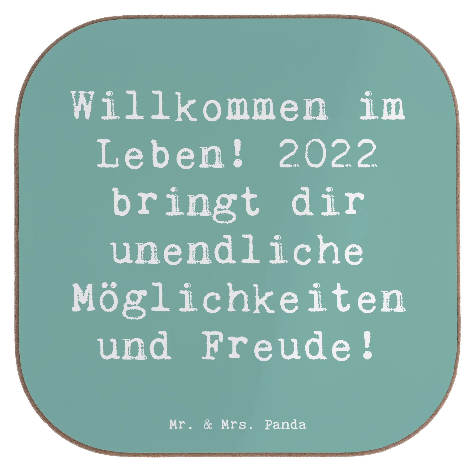 Square coaster Saying Willkommen im Leben! 2022 bringt dir unendliche Möglichkeiten und Freude! - Sea Breeze