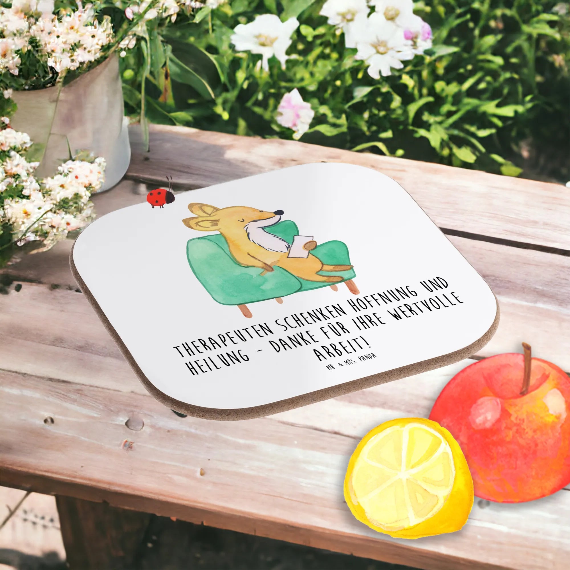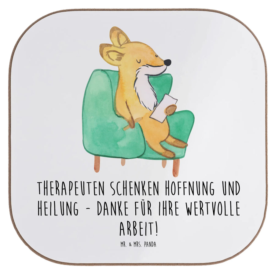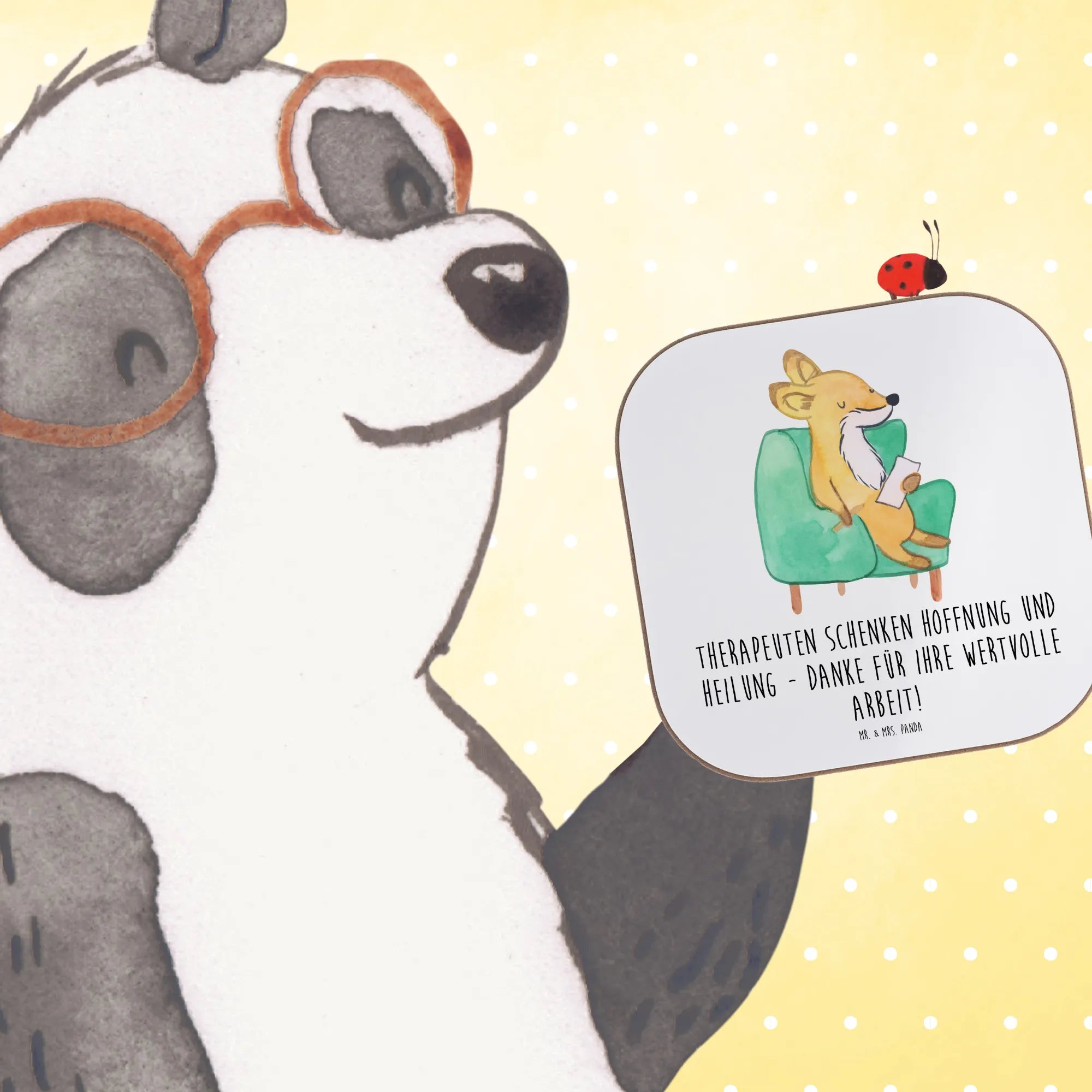 Ein kleines Danke mit großer Wirkung. Dieser quadratische Untersetzer von Mr. & Mrs. Panda trägt das liebevolle Motiv „Therapeut“ und den herzlichen Spruch „Therapeuten schenken Hoffnung und Heilung - Danke für Ihre wertvolle Arbeit!”. Ein perfektes Geschenk für Therapeutinnen und Therapeuten, das Wertschätzung und Anerkennung im Alltag sichtbar macht. 😊