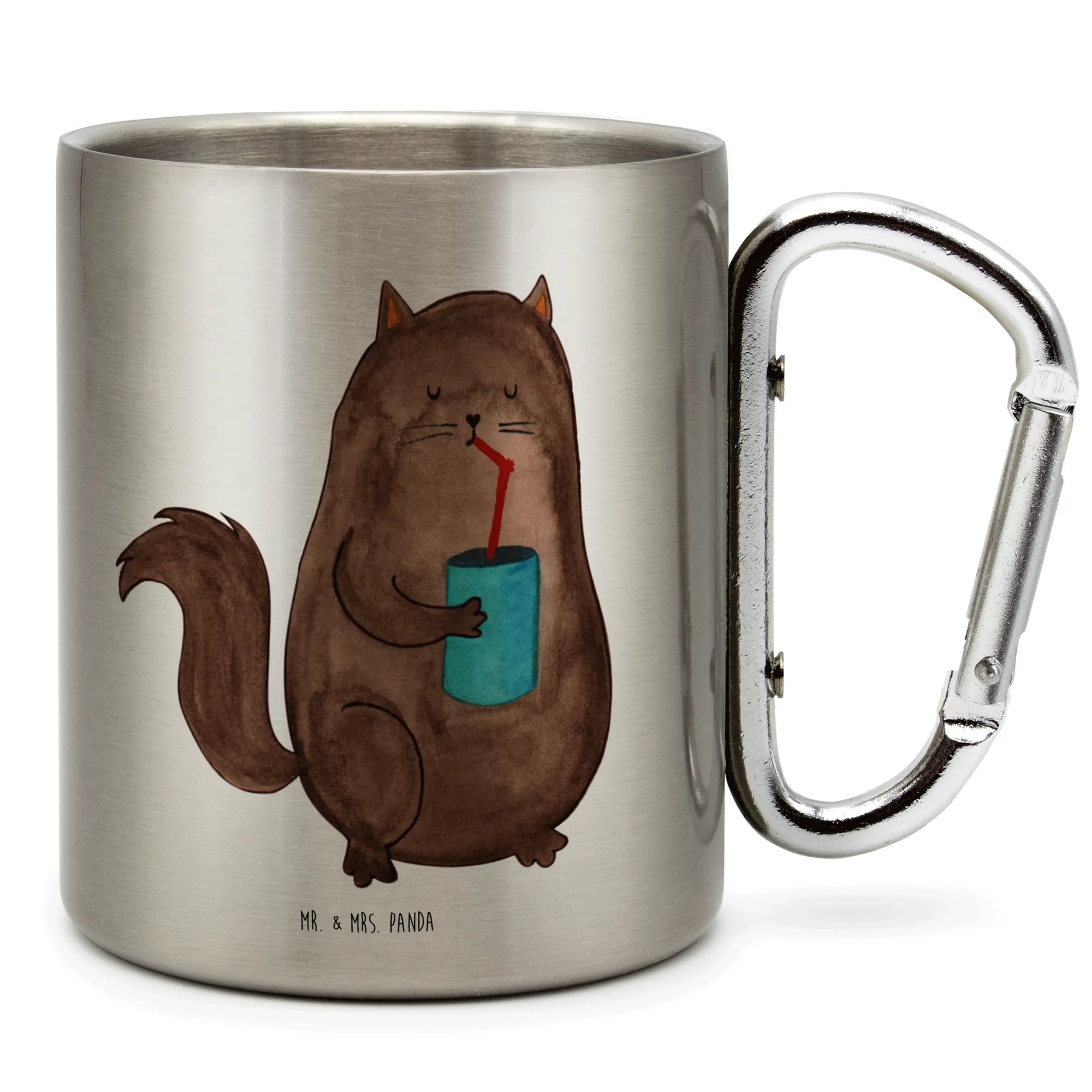 Introducing the charming stainless steel mug from the beloved Mr. & Mrs. Panda collection, the perfect gift for all cat lovers! Adorned with an adorable illustration of a cat happily holding a can, this mug beautifully embodies the playful and quirky nature of our feline friends. From the very first moment you lay eyes on it, it is clear that this isn't just any ordinary mug—it's a delightful reminder of the joy our cats bring into our lives.