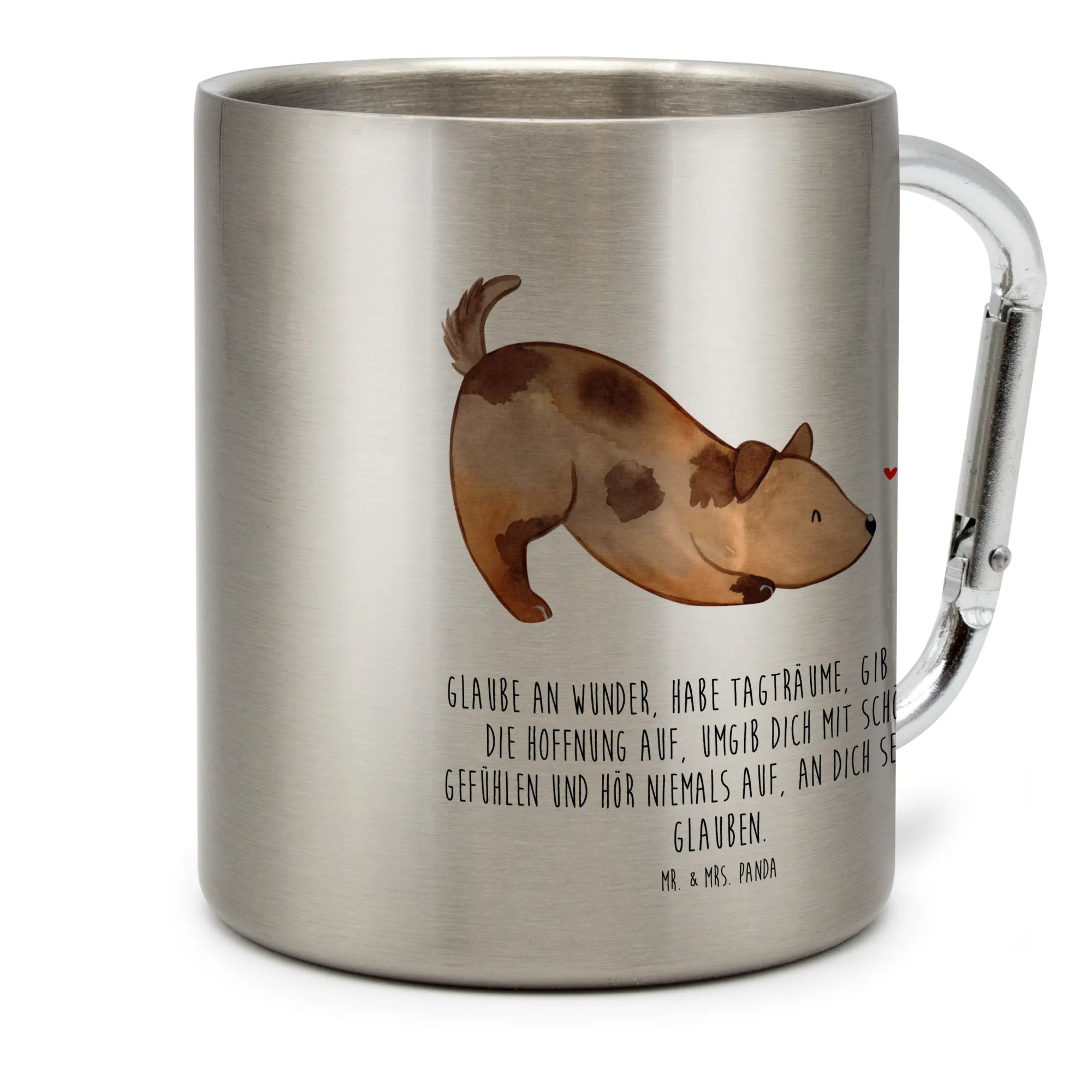 Imagine sipping your favorite drink while camping under the stars or enjoying a warm cup of hot chocolate during a chilly afternoon hike. The Stainless Steel Mug featuring an adorable Dog with a Ladybird from Mr. & Mrs. Panda is not just a mug; it's a delightful companion that embodies the love and joy of having a furry friend by your side.