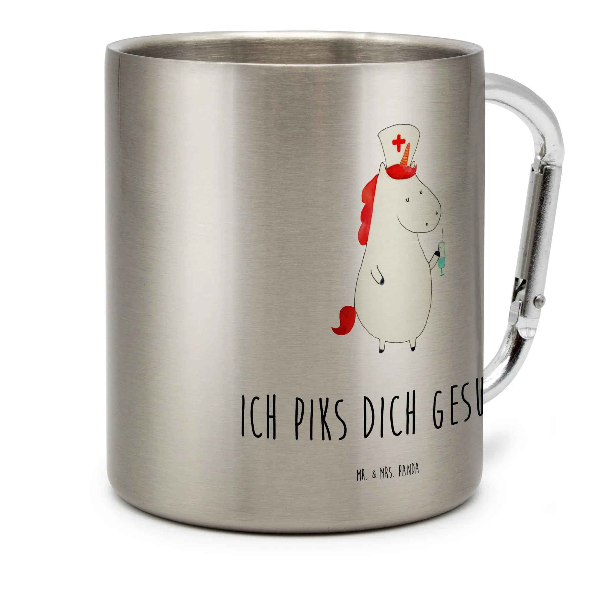 Crafted with high-quality stainless steel, this robust mug is designed to withstand the rigors of outdoor adventures, camping trips, or cozy evenings at home. Its lightweight yet durable construction ensures that it’s super easy to carry around, while the integrated carabiner hook allows you to attach it to your backpack or belt loop effortlessly. Imagine sipping your favorite hot cocoa while being reminded of the super power of your smiling unicorn nurse!