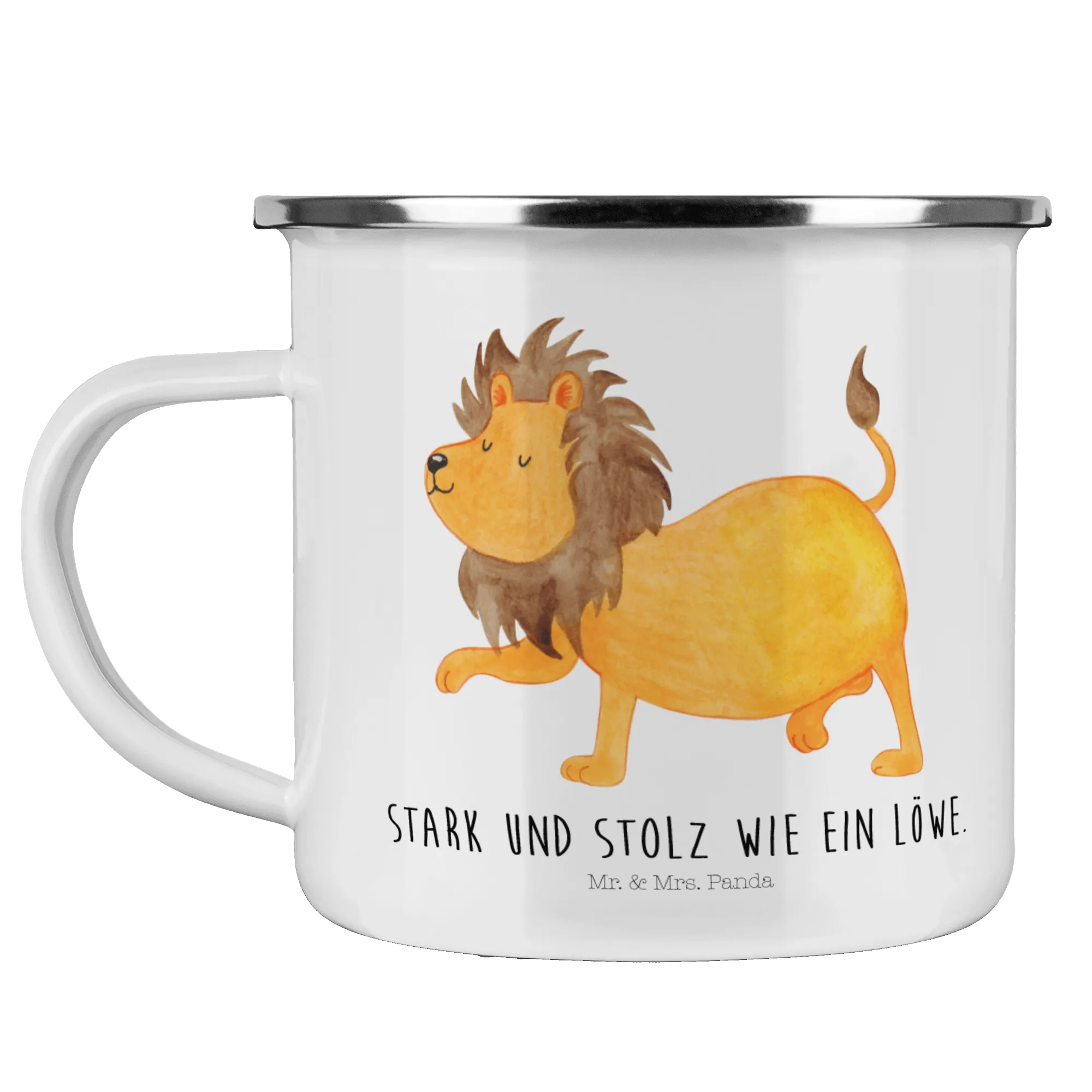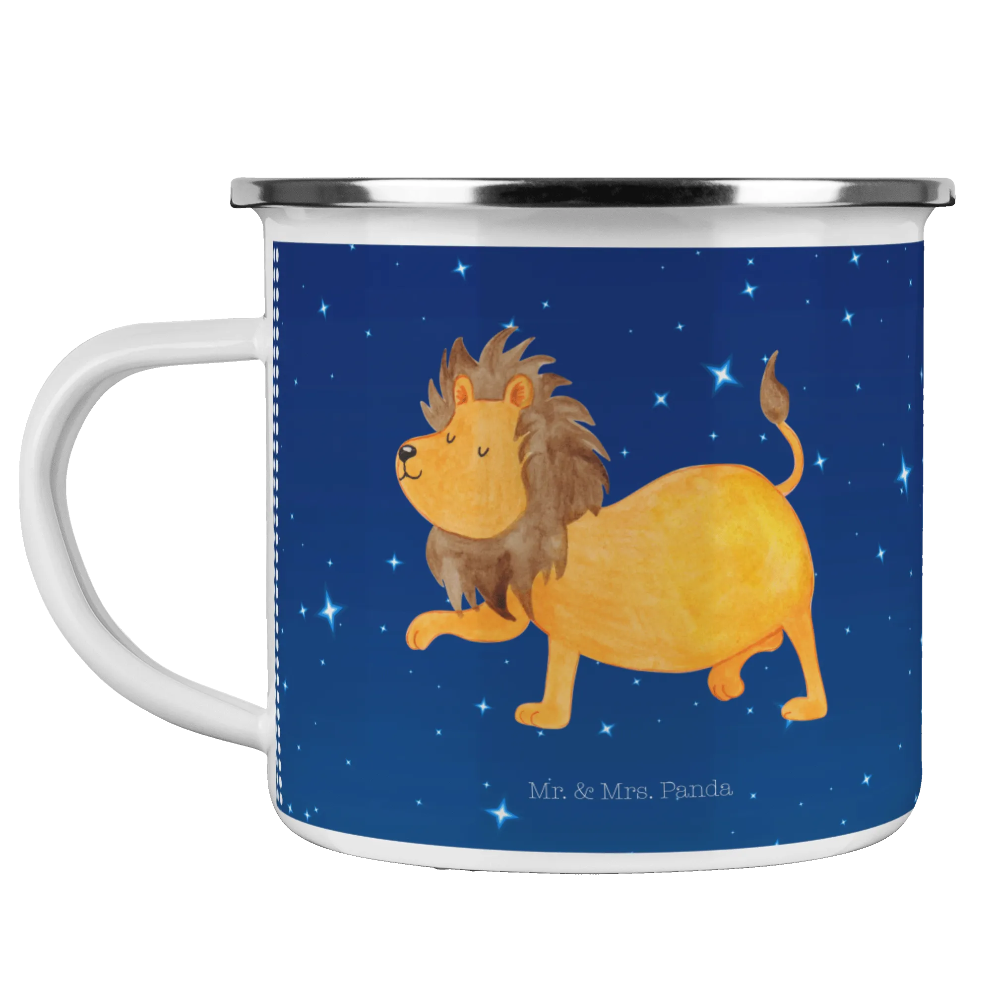Looking for the perfect gift for your adventurous friend born under the Leo zodiac sign? Look no further than our stunning Enamel Camping Mug featuring the charismatic lion motif from the charming Star Sign collection by Mr. & Mrs. Panda!