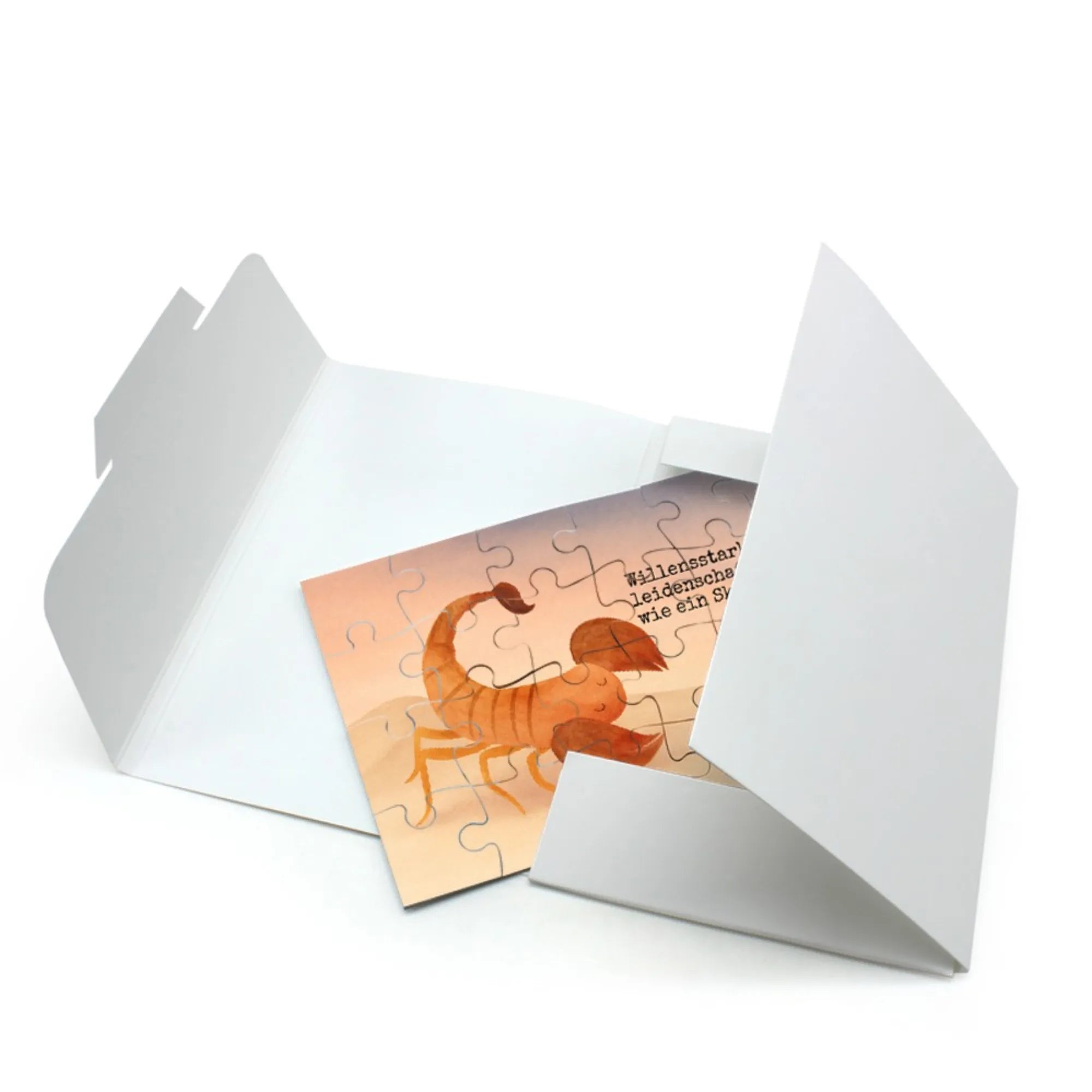 Suchst du ein liebevolles Skorpion Geschenk? Unser Puzzle Sternzeichen Skorpion von Mr. & Mrs. Panda vereint niedliche Illustration, Astrologie-Charme und ein persönliches Motto: Willensstark und leidenschaftlich wie ein Skorpion. Perfekt als Geschenk Oktober oder Geschenk November und ein hübsches Geburtstagsgeschenk für alle Skorpione.