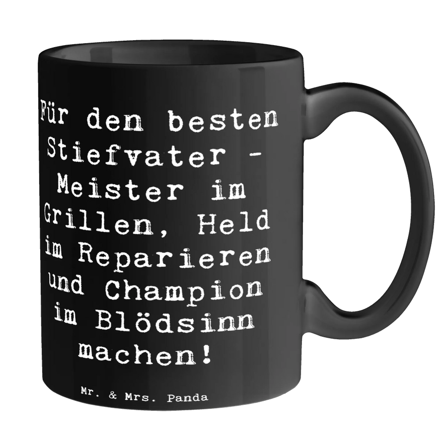 Mug Saying Für den besten Stiefvater. Meister im Grillen, Held im Reparieren und Champion im Blödsinn machen! - Black