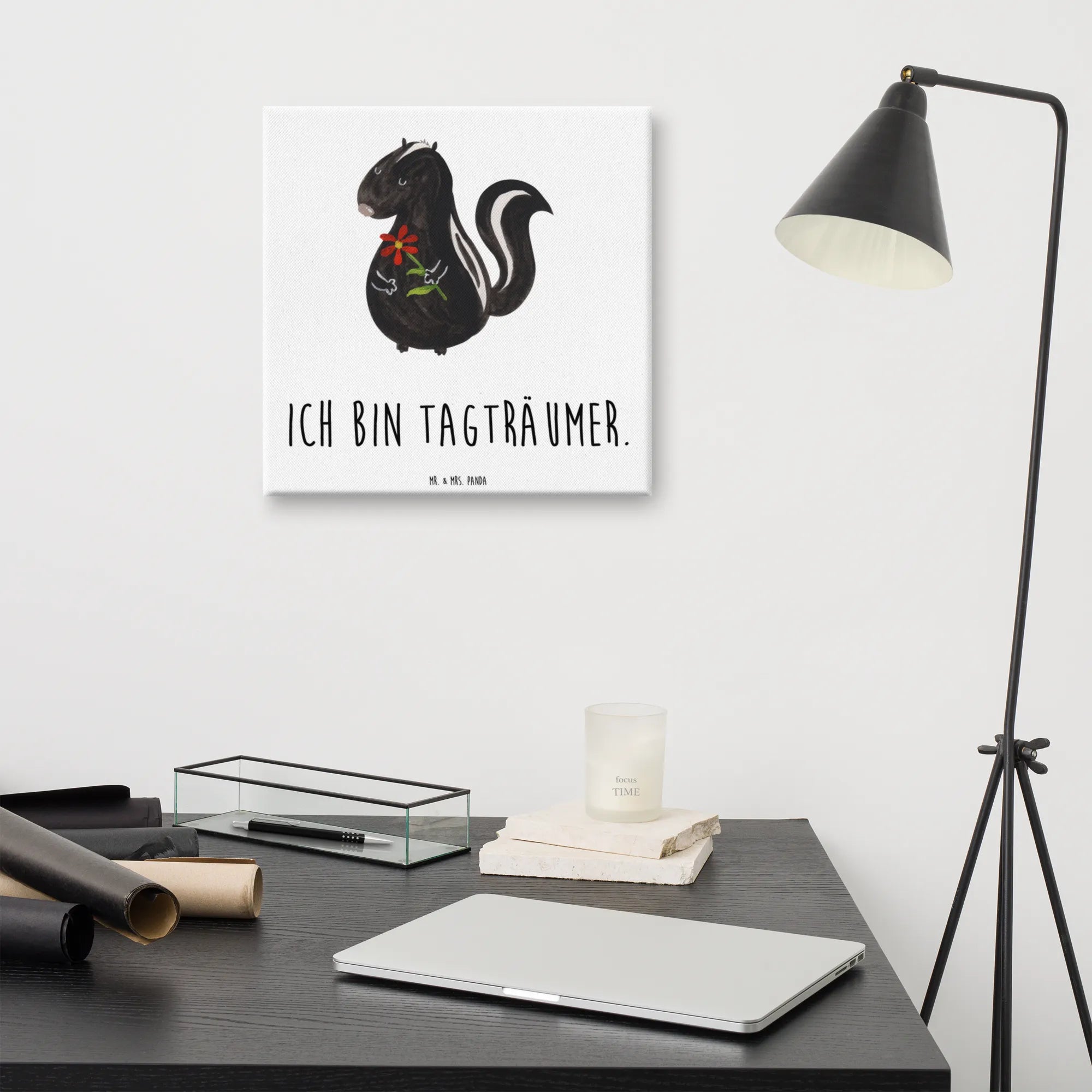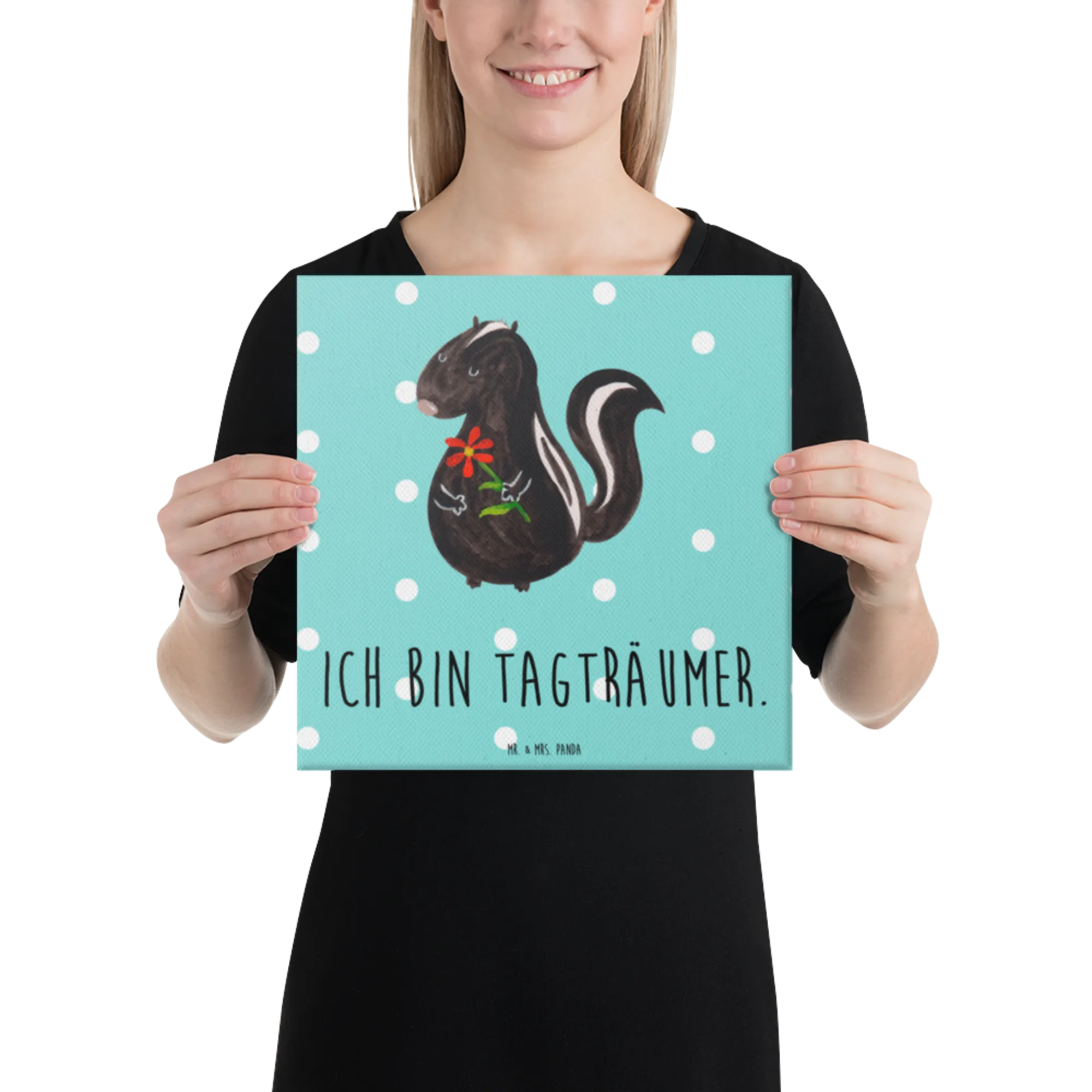 Canvas picture skunk flower - 40 x 40 cm - with saying - White
