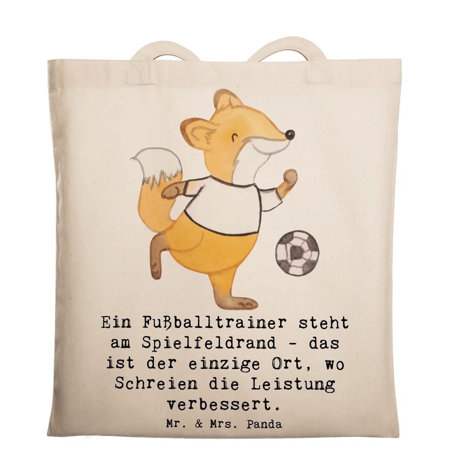 Tote bag Ein Fußballtrainer steht am Spielfeldrand - das ist der einzige Ort, wo Schreien die Leistung verbessert. - Transparent