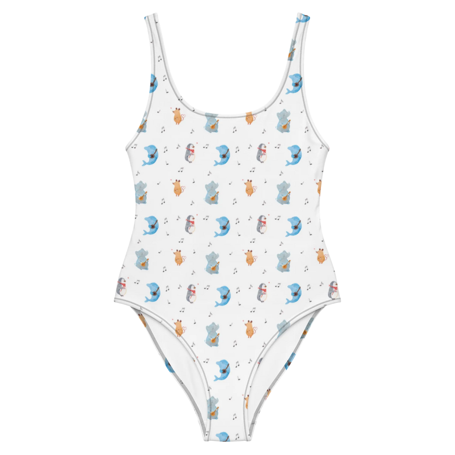 This unique swimsuit features adorable characters like a penguin, a mouse, a dolphin, and an elephant, each bringing their own musical flair to your beach or poolside experience. They are ready to play their charming melodies and dance alongside you, making every splash a reason to smile!