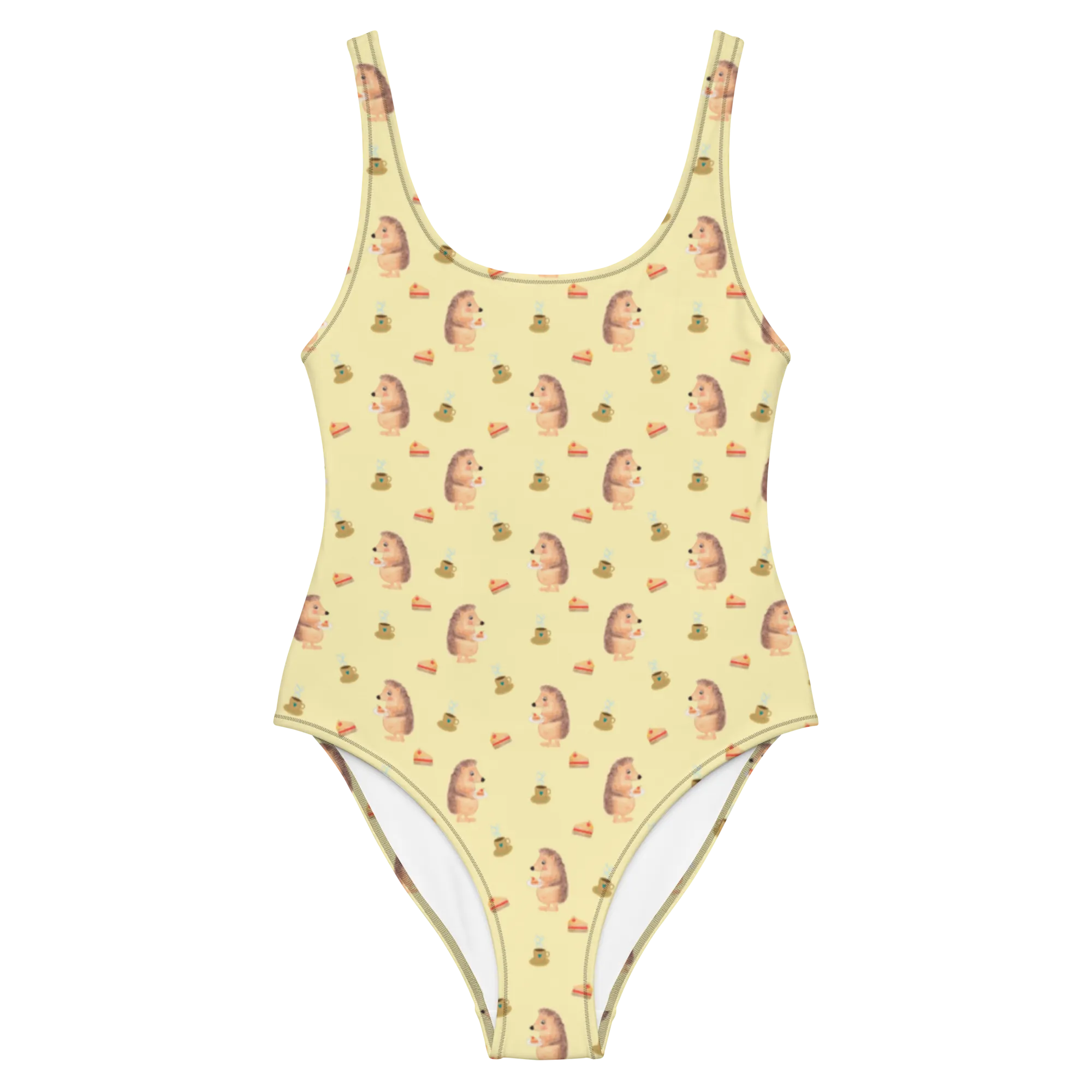 Introducing the adorable Hedgehog Swimsuit with a slice of cake from our charming Small World collection! This delightful piece is not just a swimsuit but a celebration of life's sweetest moments. Perfect for all those who hold a special place in their heart for cute animals and those whimsical touches that bring joy to our everyday lives. If you love hedgehogs, cake, and a sprinkle of fun, then this swimsuit is undeniably a must-have for your wardrobe.