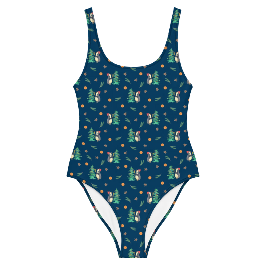 Embrace the festive spirit this holiday season with our adorable Penguin Christmas Tree Swimsuit from the enchanting Winter Collection by Mr. & Mrs. Panda! Perfectly suited for those magical winter getaways or cozy family gatherings, this swimsuit combines style and playfulness that will not only make you stand out but also spread joy all around. With its charming motif of a cheerful penguin proudly decorating a Christmas tree, it's hard not to smile each time you wear it!