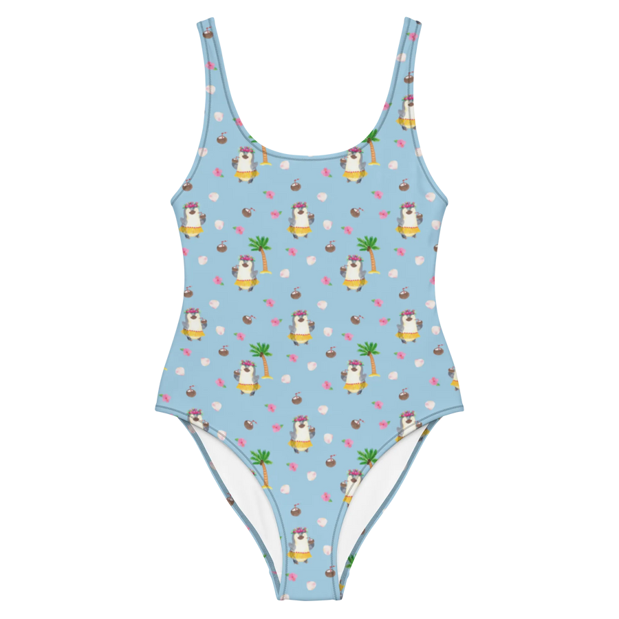 With its vibrant blue background, this swimsuit not only stands out but also brings a feeling of a warm Hawaiian vacation wherever you go. This piece is a must-have for every swimwear collection and pairs beautifully with a sarong or beach cover-up. So go ahead, treat yourself or a loved one to a slice of happiness and grab this race of playful fashion while it lasts! Dive into summer with Mr. & Mrs. Panda and create wonderful memories in our Penguin Coconut Swimsuit!