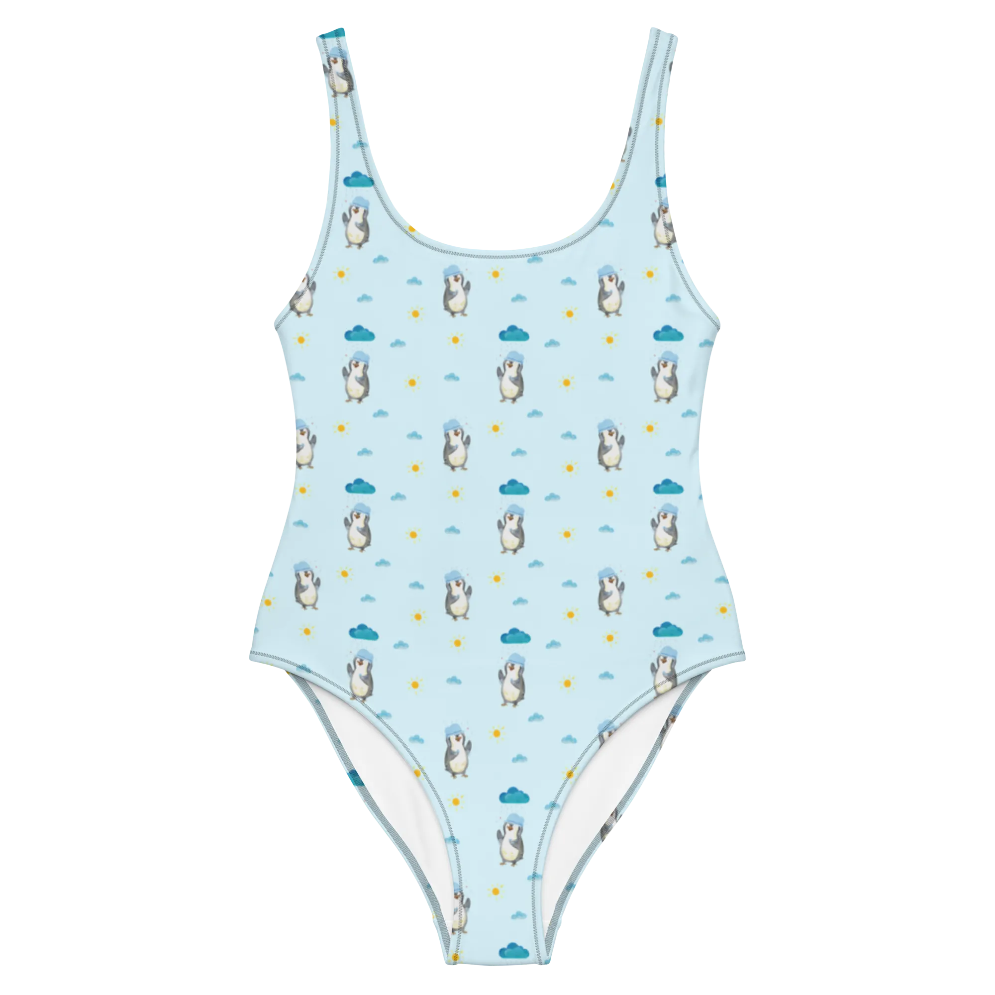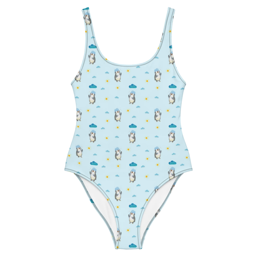 Dive into the fun and excitement with our delightful Penguin Showers Swimsuit from the exclusive Penguin Collection by Mr. & Mrs. Panda! This isn't just any swimsuit; it's a joyful statement of life, happiness, and new beginnings! Imagine slipping into this soft and stretchy material, crafted from high-quality polyester and elastane. Whether you're hitting the beach, lounging by the pool, or just splashing about at home, our swimsuit will keep you feeling comfortable and stylish.