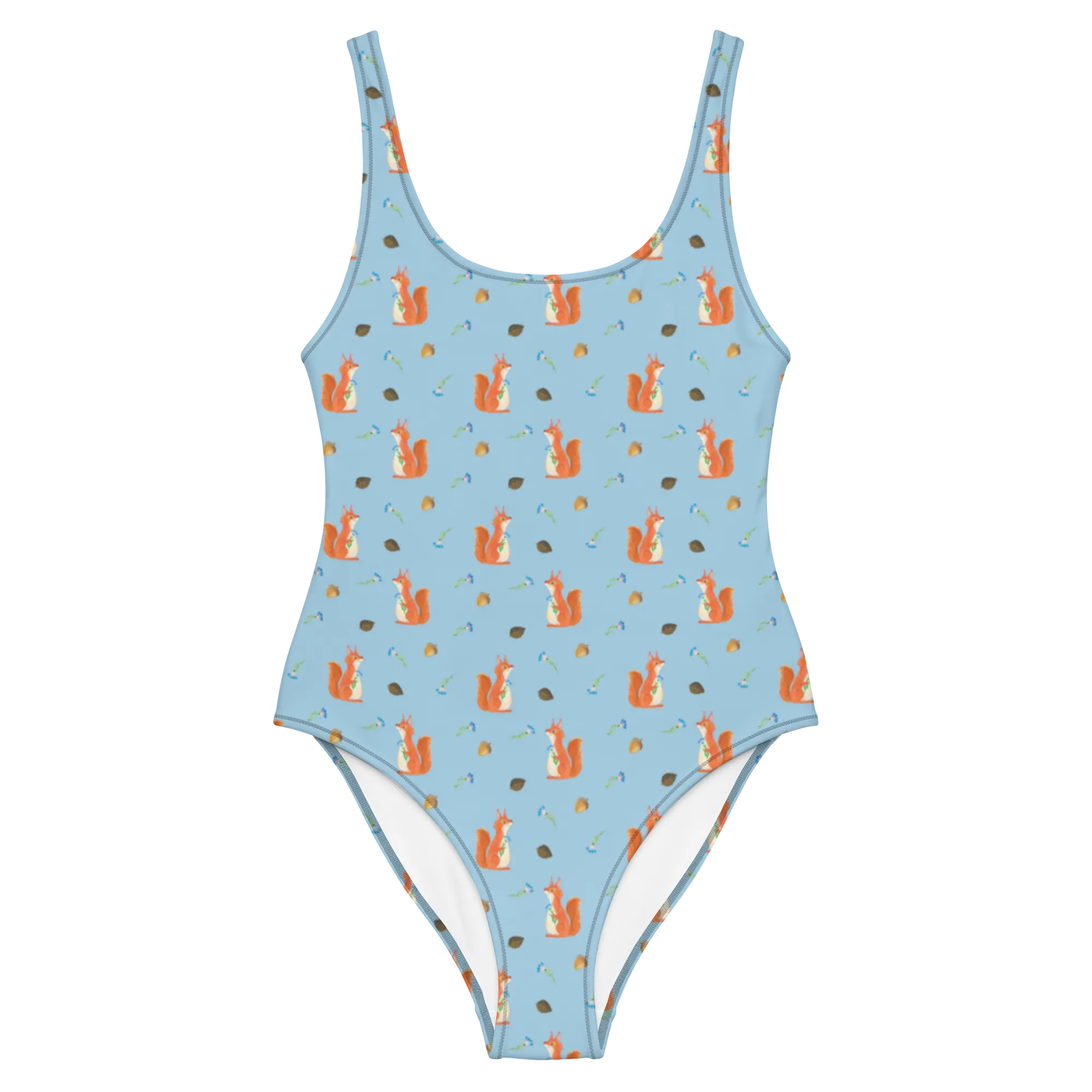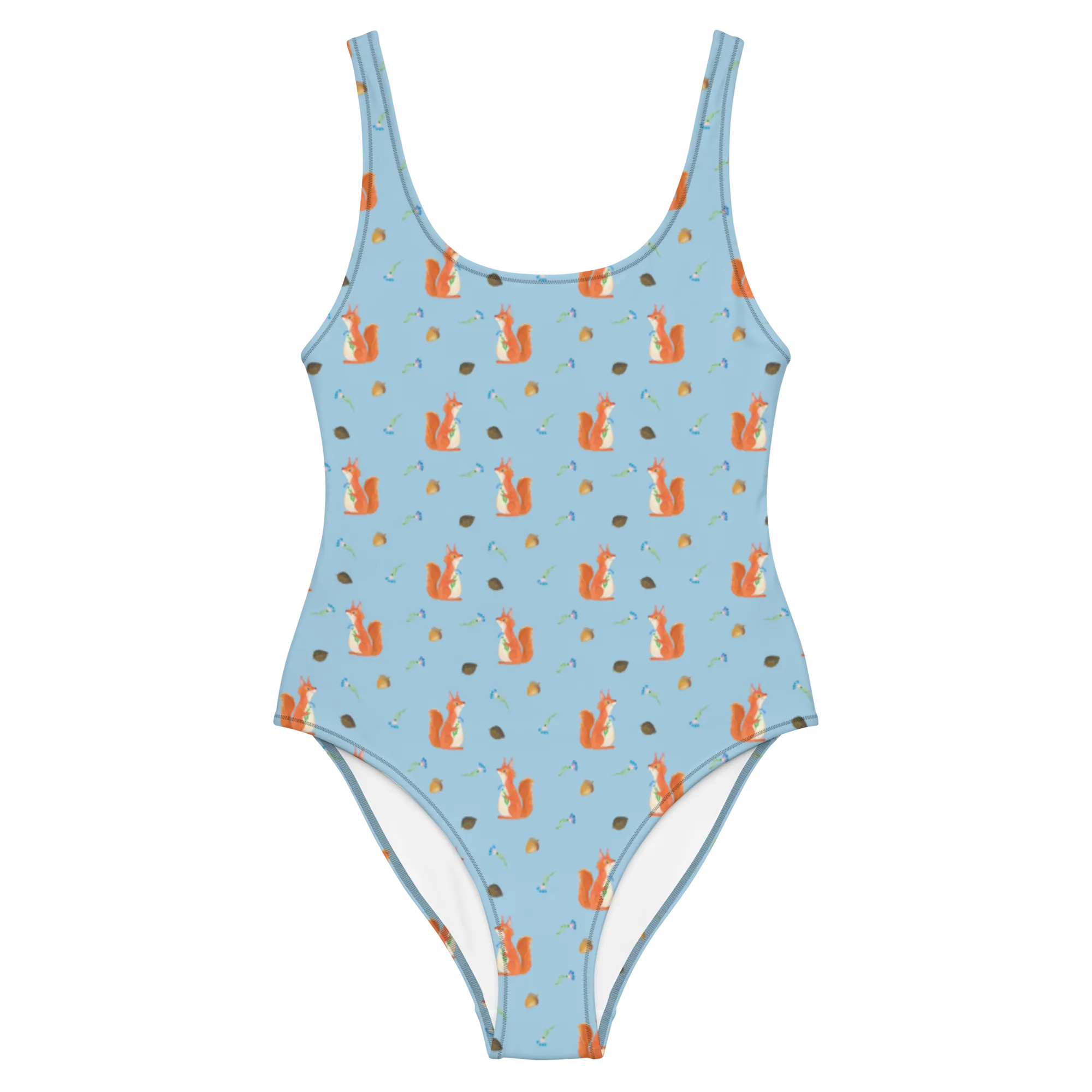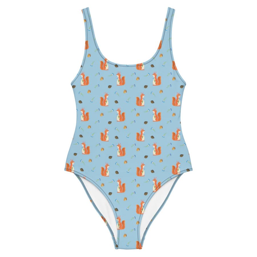 Imagine slipping into this swimsuit, where every little detail reminds you of the beauty of nature and the happiness of simple moments. The hand-drawn squirrel, holding a bright flower, symbolizes joy and the little things in life that bring us glee. Made from high-quality polyester and elastane, this swimsuit promises a snug fit while providing necessary comfort during your beach days or poolside lounging.