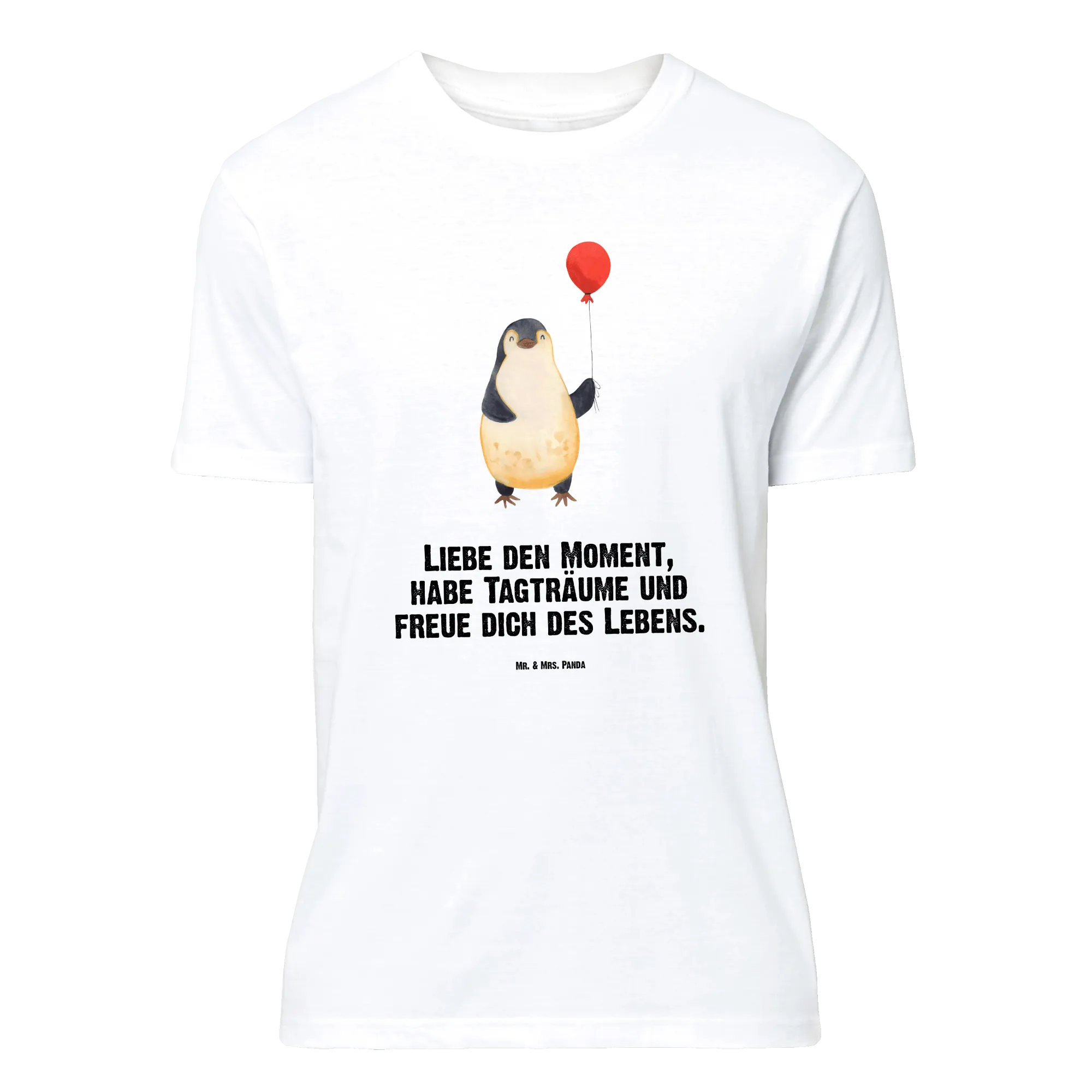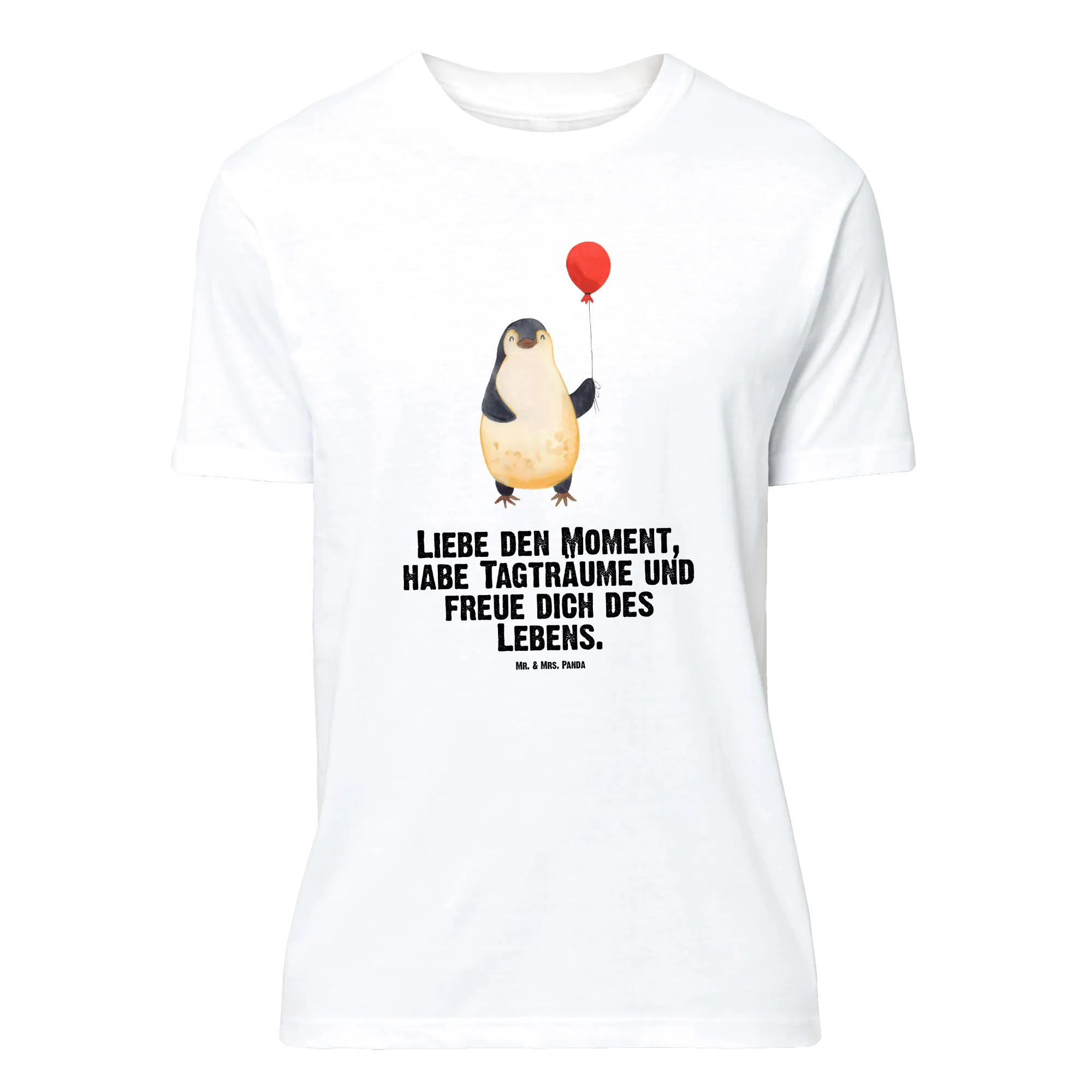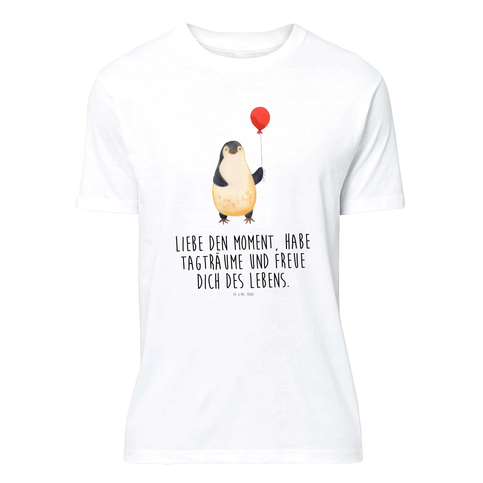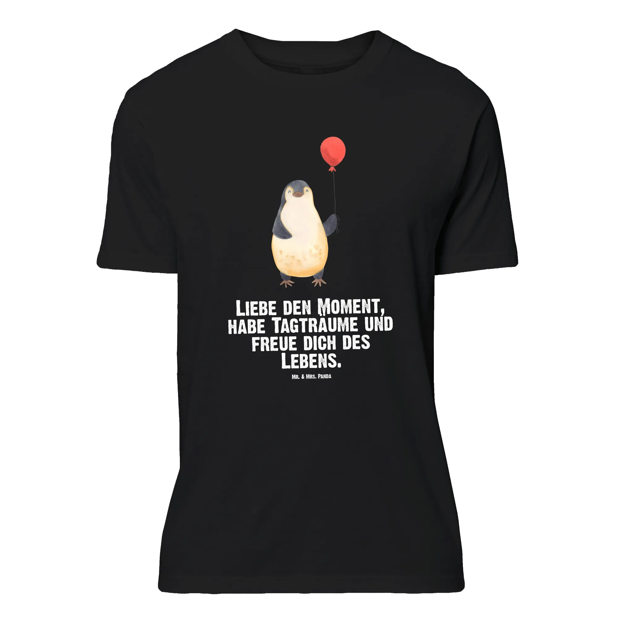 Vom Herzen getragen: Dieses Größe XXL T-Shirt aus der Pinguin - Kollektion zeigt unseren kleinen Pinguin mit Luftballon, liebevoll handgezeichnet von Mr. & Mrs. Panda. Auf dem schwarzen Stoff kommt das Aquarell-Motiv wunderbar zur Geltung und verbreitet sofort Wärme, Lebenslust und gute Laune.
