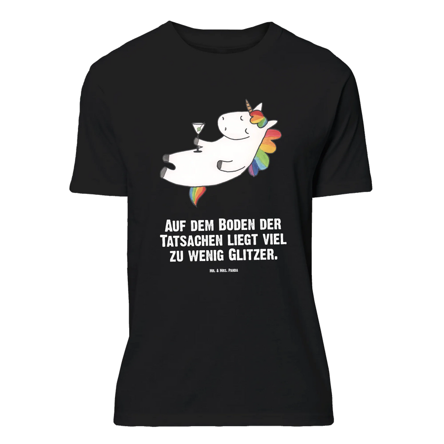 Dieses Größe XXL T-Shirt „Einhorn Cocktail“ aus der Einhorn - Kollektion von Mr. & Mrs. Panda ist ein echter Gute-Laune-Macher. Auf schwarzem Grund strahlt ein zufriedenes Einhorn, das lässig ein Cocktailglas hält. Der freche Spruch „Auf dem Boden der Tatsachen liegt viel zu wenig Glitzer.“ macht das Shirt zum idealen Party-Begleiter.
