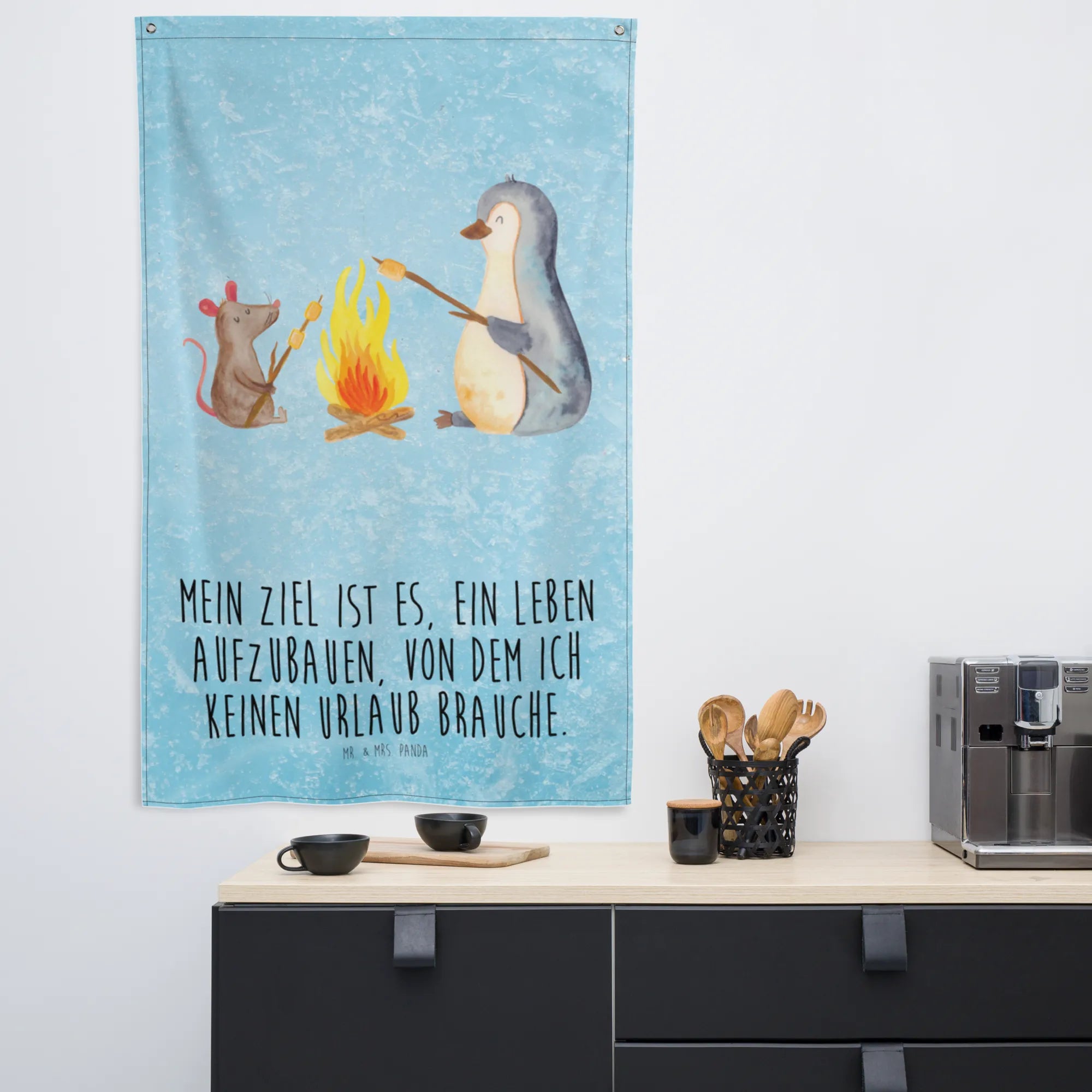 Tapestry Penguin campfire - with a saying - Chalkboard