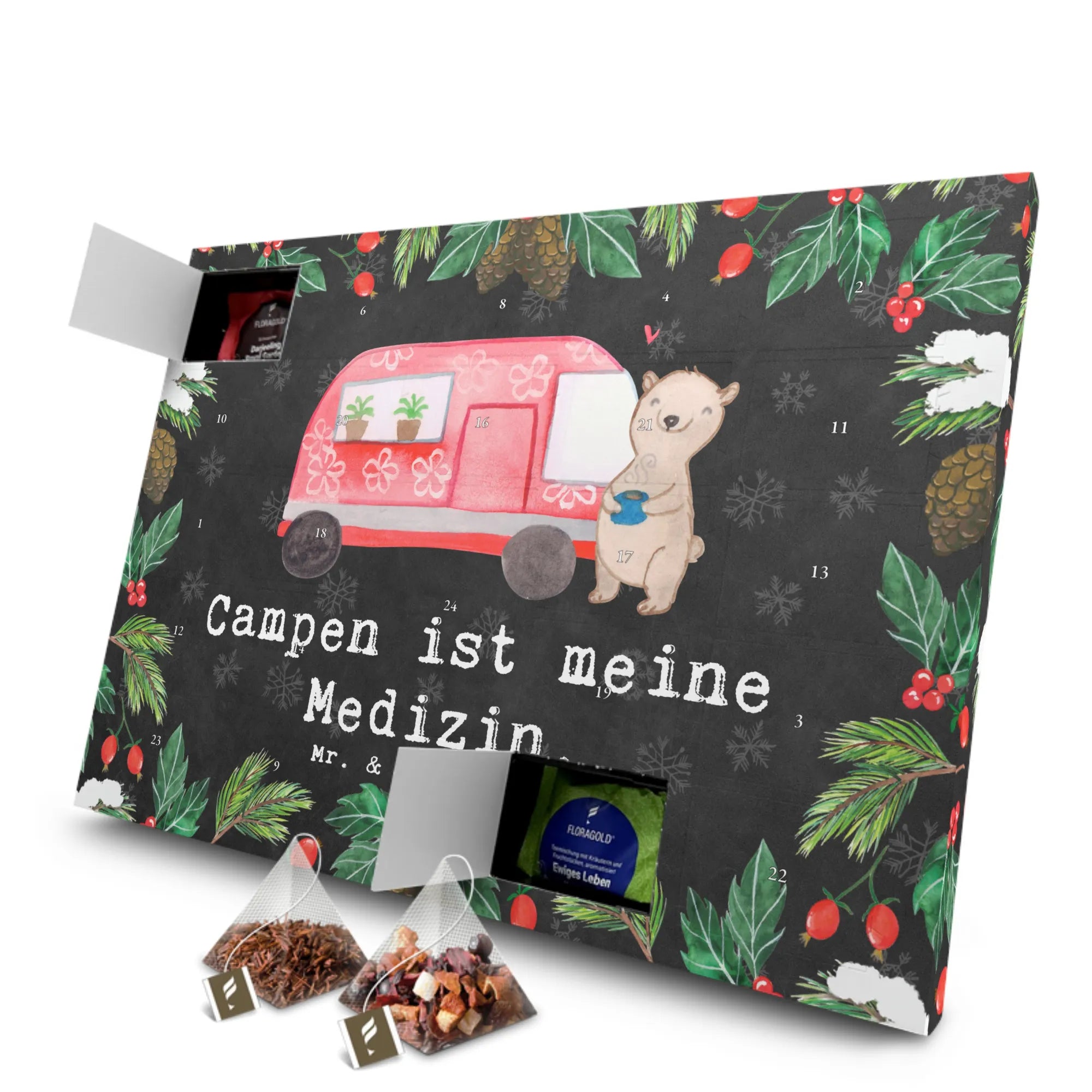 Entdecke den Wunderschönen Tee Adventskalender von Mr. & Mrs. Panda mit dem süßen Motiv "Bär Camper Medizin" aus der Kollektion Hobby & Sport. 🌟 Campen ist mehr als nur ein Hobby – es ist eine Medizin für die Seele! Wenn du gerne die Freiheit der Natur und die Gemütlichkeit des Campens genießt, dann ist dieser Adventskalender das perfekte Geschenk für dich und deine Liebsten.