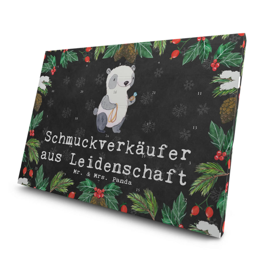 Der Adventskalender hat die tollen Maße von 530 mm x 370 mm x 35 mm und kann sowohl aufgehängt als auch aufgestellt werden. Die brillante Druckqualität mit seidenmatter Oberflächenveredelung sorgt dafür, dass die Motive und Sprüche, die liebevoll von Frau Panda handgezeichnet wurden, in voller Pracht erstrahlen. Der Slogan "Schmuckverkäufer aus Leidenschaft" zieht sich durch das gesamte Design und macht den Kalender zu einem ganz besonderen Geschenk. Er ist ideal für Jubiläen, Abschiede oder einfach um Danke zu sagen!