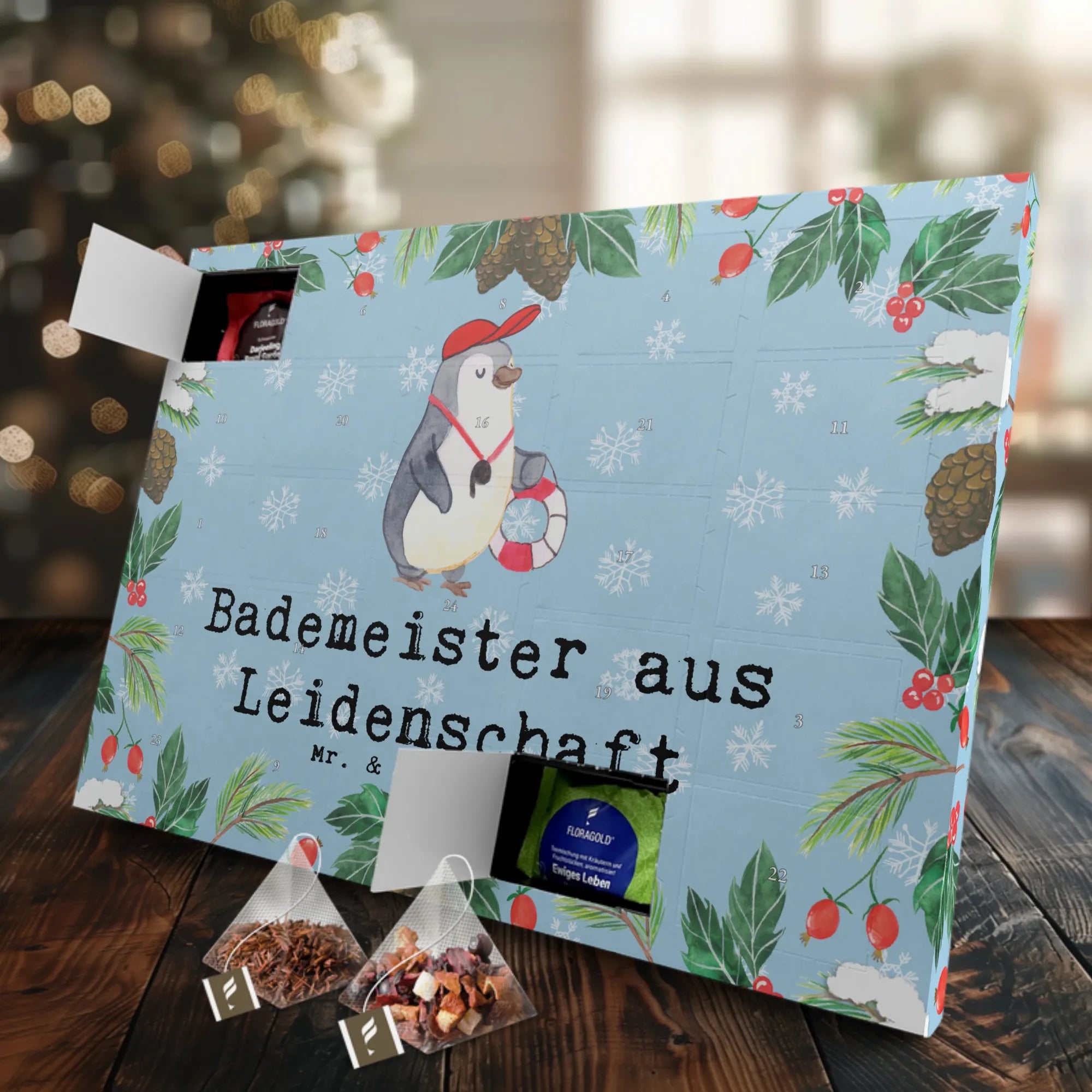 Der Pinguin, der stolz den Titel "Bademeister aus Leidenschaft" trägt, symbolisiert die Hingabe und Freude, die Du auch in deinen Aufgaben zeigst. Überrasche die Bademeister in Deinem Leben oder vielleicht sogar Dich selbst mit diesem besonderen Adventskalender und teile die Liebe zum Tee in dieser festlichen Zeit!