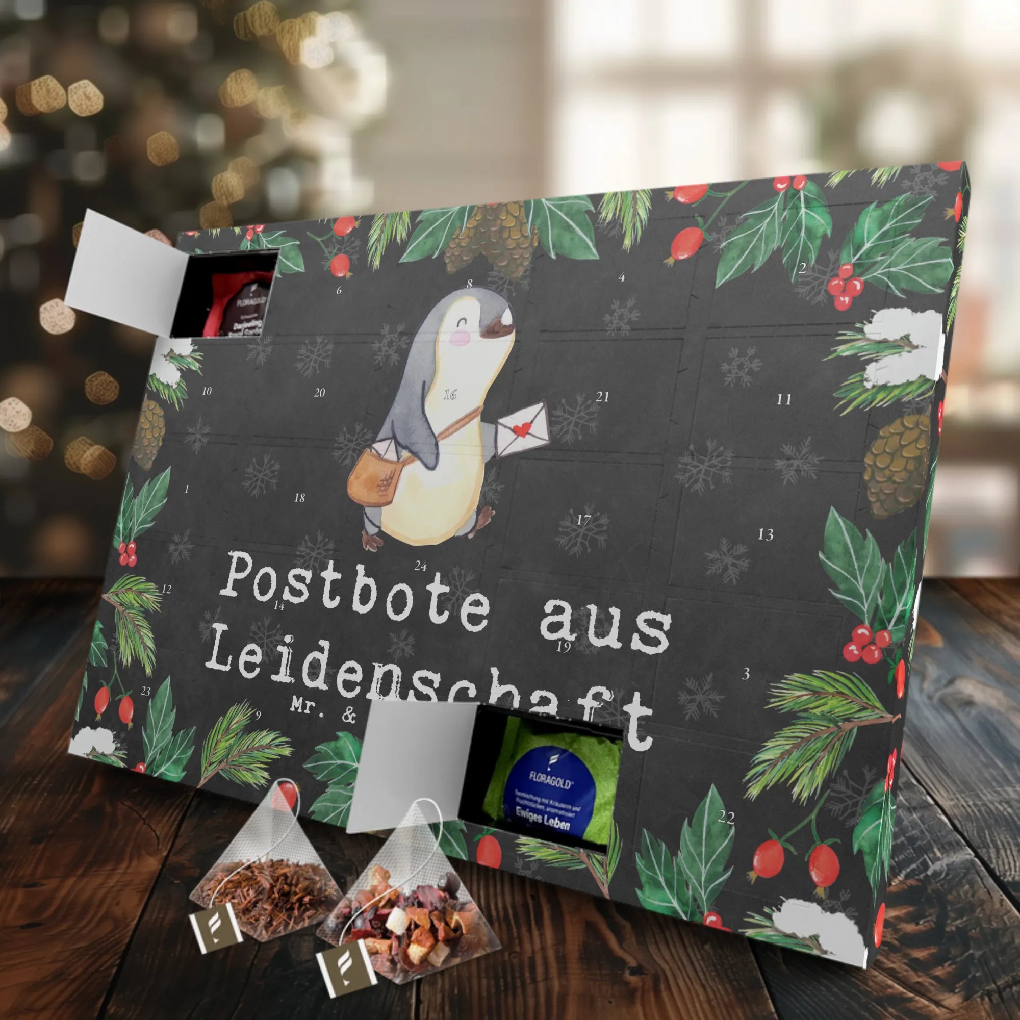 Der Tee Adventskalender "Postbote aus Leidenschaft" von Mr. & Mrs. Panda ist das perfekte Geschenk für alle Postboten und Postbotinnen. Egal, ob Du nach einem originellen und liebevollen Präsent zum Jobbeginn, zur Beförderung, zum Jubiläum oder zum Abschied suchst, dieser Kalender hat alles, was das Herz begehrt. Mit 24 einzeln verpackten hochwertigen Teesorten im Pyramidenbeutel lädt er dazu ein, jeden Tag eine neue Geschmacksreise zu erleben.