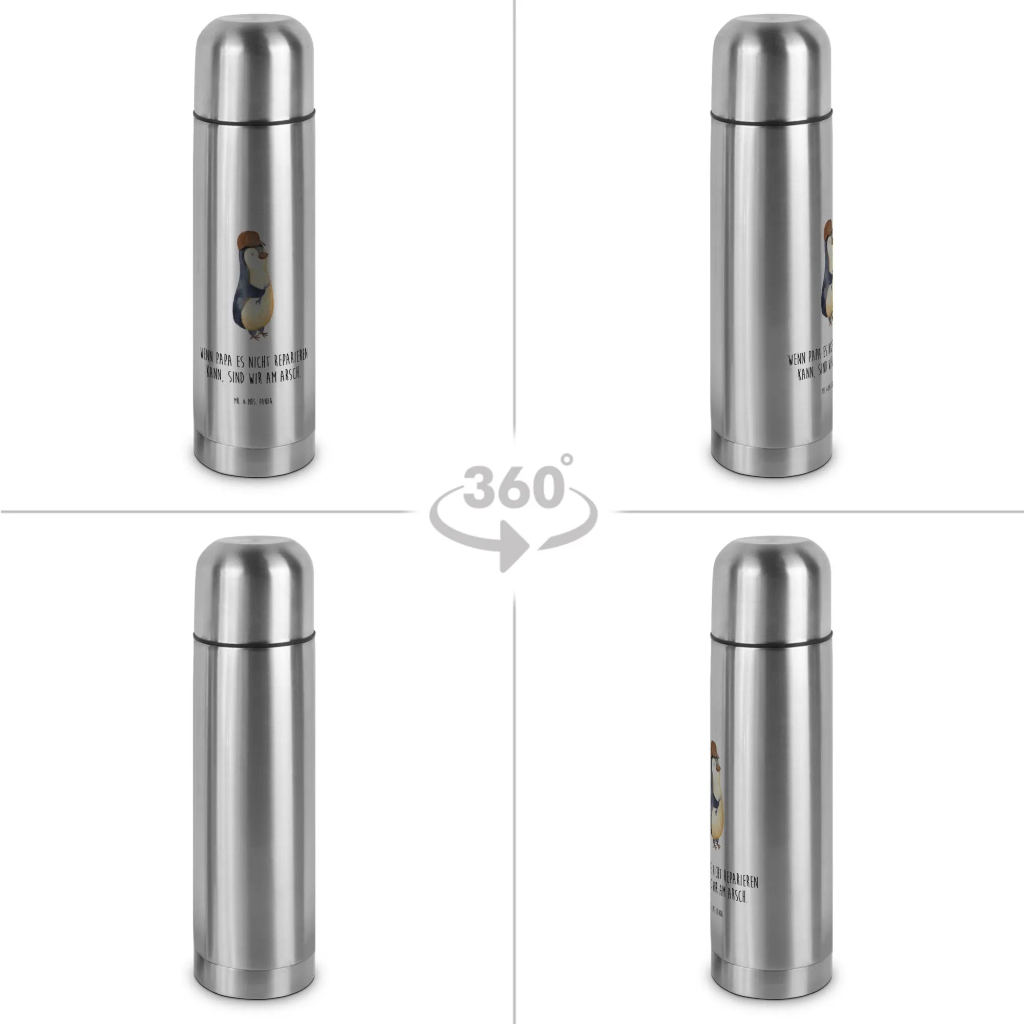 Mr. & Mrs. Panda Thermoskanne „Wenn Papa es nicht reparieren kann, sind wir am Arsch“ – das perfekte Geschenk für alle Papas mit Schraubenschlüssel und Herz. Diese Thermoskanne verbindet Humor, Liebe und Alltagstauglichkeit in einem schönen Design. Der charmante Pinguin mit brauner Kappe und Schraubenschlüssel steht für handwerkliches Geschick und eine große Portion Familienliebe. 😊
